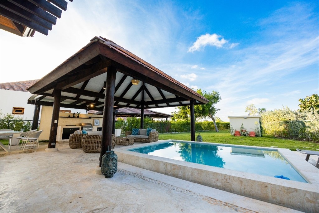 Vive en una de las zonas más exclusivas del Caribe. Esta espectacular villa en venta en Green Village, Cap Cana, combina lujo, privacidad y naturaleza en un solo lugar. Con una ubicación privilegiada dentro del complejo turístico Cap Cana, esta propiedad es ideal tanto como residencia principal, casa vacacional o inversión de renta corta. Características de la propiedad: 3 habitaciones con baños privados 3.5 baños en total Amplia sala y comedor con techos altos y excelente iluminación natural Cocina abierta y moderna Jardín privado con piscina Terraza techada, ideal para disfrutar en familia o con amigos Área de lavado y cuarto de servicio 2 parqueos Beneficios y amenidades: Ubicada dentro del prestigioso Green Village en Cap Cana Acceso al campo de golf Punta Espada, uno de los mejores del Caribe Seguridad 24/7 y control de acceso A pocos minutos de Playa Juanillo, Marina Cap Cana, Api Beach y Eden Roc Cerca de supermercados, restaurantes gourmet, colegios internacionales y el Aeropuerto de Punta Cana Esta villa representa una excelente oportunidad de inversión inmobiliaria en Cap Cana, en una zona con alta valorización y demanda tanto para renta vacacional como para uso residencial. ¡Contáctanos hoy mismo y agenda tu visita a esta exclusiva propiedad en Green Village, Cap Cana!