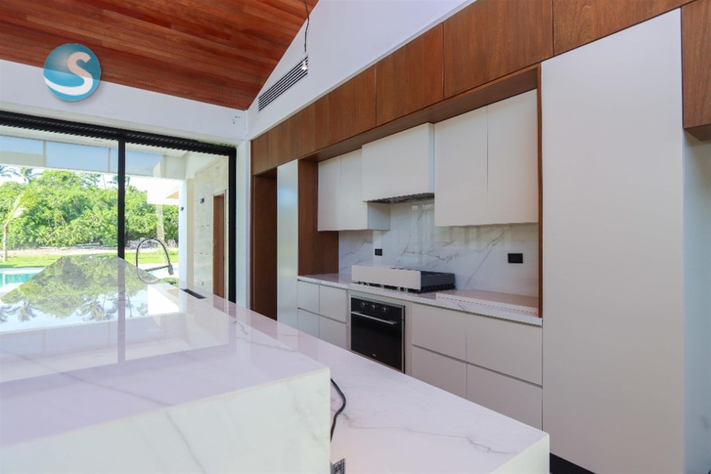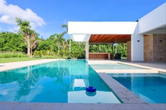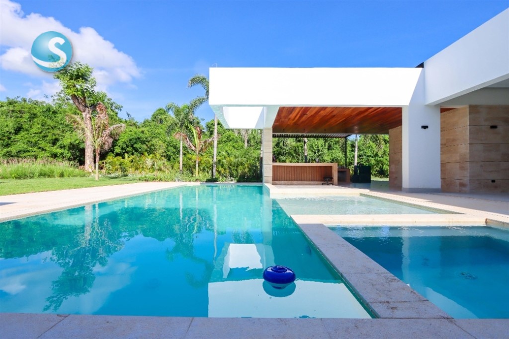 Descripción Villa en venta , ubicada en Casa de Campo, La Romana. Se sumerge en un entorno que combina tranquilidad y lujo. Ofrece a sus residentes la oportunidad de disfrutar de un estilo de vida sereno y tranquilo, inmersos en la naturaleza, donde la paz es el distintivo. Con espacios diseñados para armonizar con el entorno natural, esta residencia brinda una experiencia única. Características generales La residencia cuenta con un patio amplio con su piscina y una terraza techada. Tiene cuatro estacionamientos, una sala espaciosa, comedor, estudio y una cocina fría y caliente. También incluye dos cuartos de servicio y un área de lavado. Los dormitorios están en un ala, con una suite principal y cuatro habitaciones secundarias, cada una con baño privado y balcón. Características generales de la casa: Un (1) nivel ??Espejo de agua entrada Marquesina (6) parqueos ??Un (1) estudio Una (1) Sala Comedor (12) personas Cocina fria Deck de madera Cocina caliente Una (1) hab. principal ??Terraza exterior techada • Cuatro (4) hab. secundarias ??Piscina infinity Dos (2) hab. de Servicio Jacuzzi Nueve (9) baños Patio Balcón en hab. principal / secundarias Cuatro (4) closet ropa blanca Acceso servicio ??Área lavado ??Almacén Cuarto maquinas