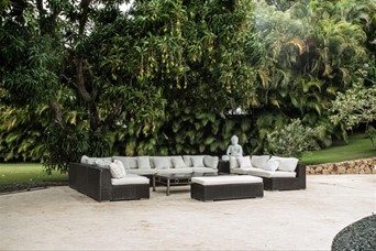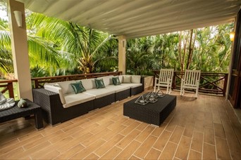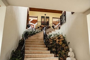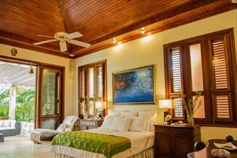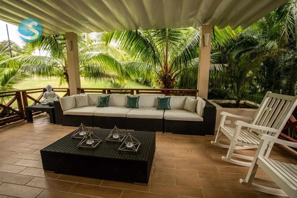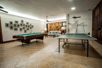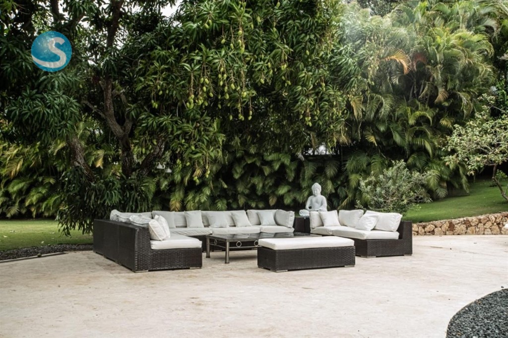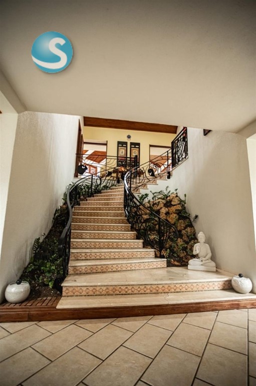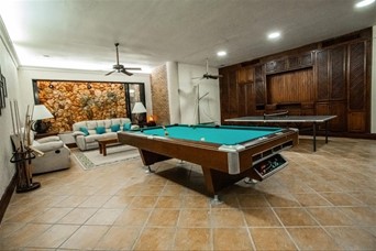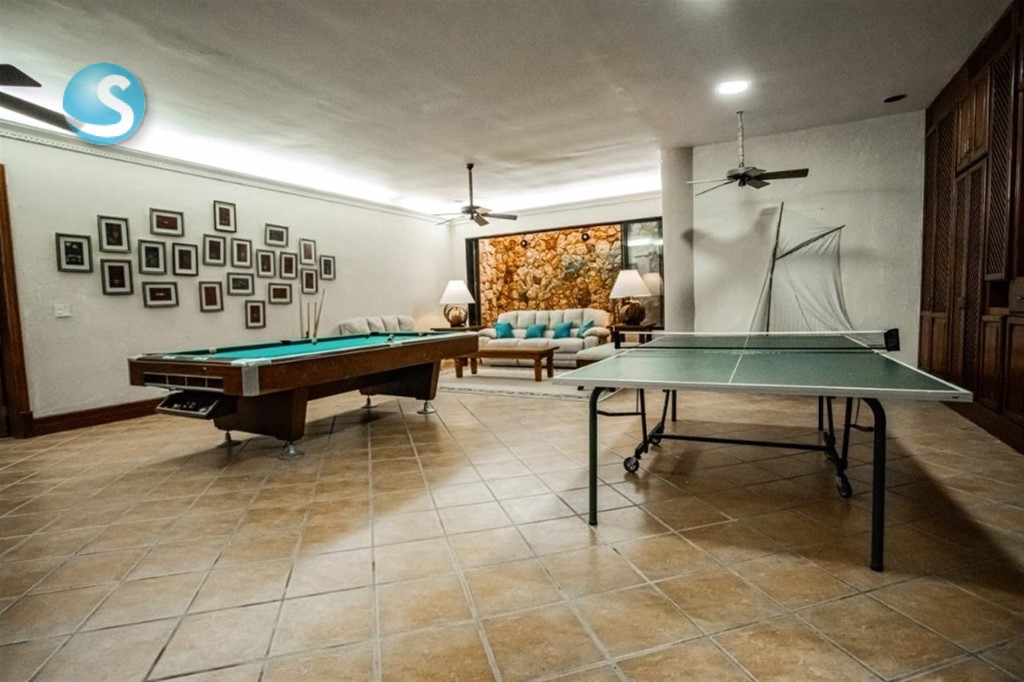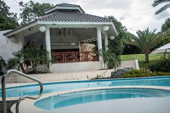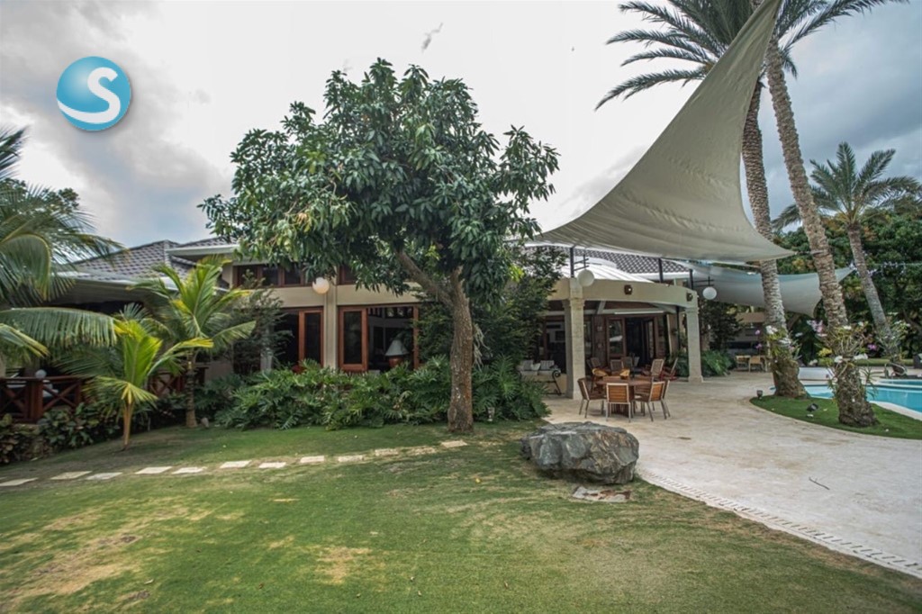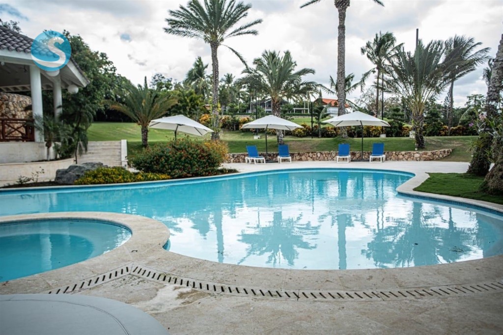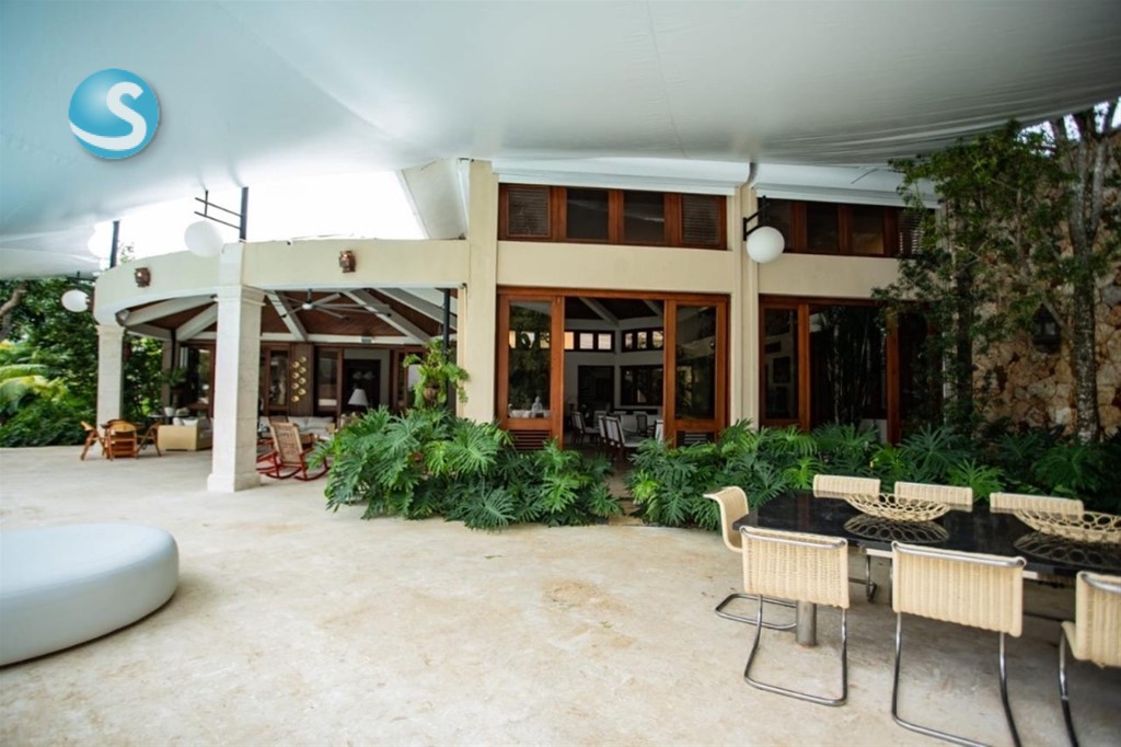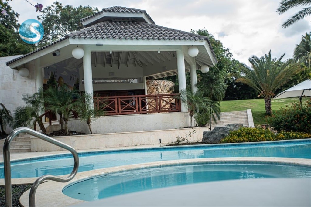 Villa Vacacional y Turística en Rancho Arriba, Casa de Campo, Provincia La Romana, R. D., con la siguiente distribución: Solar: 3,870.94 metros cuadrados, Construcción: 2,060 metros cuadrados. *La construcción tiene actualmente una diferencia de 220 metros cuadrados que no están especificados en los documentos legales de Costa Azul. 1er. Nivel: Diez habitaciones o dormitorios con sus baños y closets de pared. 2do. Nivel: Cinco habitaciones o dormitorios con baño y closets de pared, comedor, sala, estar y terraza hacia la piscina y cocinas. Abajo en el primer nivel hay otra cocina, dos dormitorios de servicio con capacidad para alojar ocho (8) personas en cada uno. El dormitorio de las mujeres tiene dos baños, y el de los hombres tiene uno dentro y el otro fuera. Área de piscina con jacuzzi, un gazebo con un sauna, con dos baños o baño turco de vapor en el sótano, hoy en día convertida en un área de juego con billar, etc. La villa completa tiene terminación de primera con madera de caoba con pino tratado. Pisos de porcelanato, escalera con huellas y contrahuellas en mármol, pasamanos de escalera en hierro con diseño. Ascensor para las personas (no de carga). Plafones con TAS. #039, VILLA VACACIONAL Y'TURISTICA, RANCHO ARRIBA, CASA DE CAMPO, PROI: LA ROMANA. R.D. ACTUALIZ. OCTUBRE 2024 d) e madera machihembrada pegado del techo de hormigón armado más• tejas asfálticas. alón para meditación ubicado en el sótano, garaje para vehículos. Marquesina spacio en el frente con capacidad de quince (15) vehículo Jardines y paisajismo en todo el alrededor de la piscina y entrada de la villa.