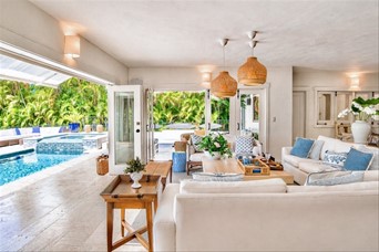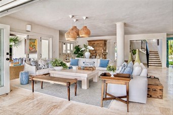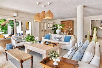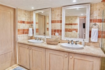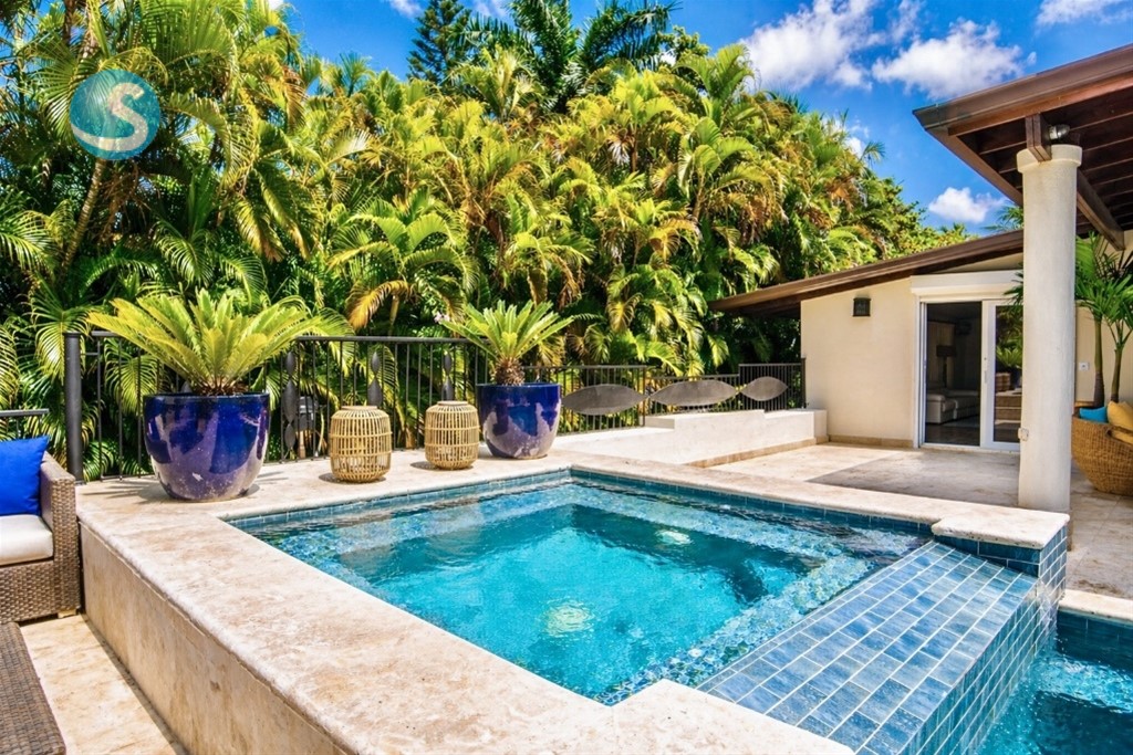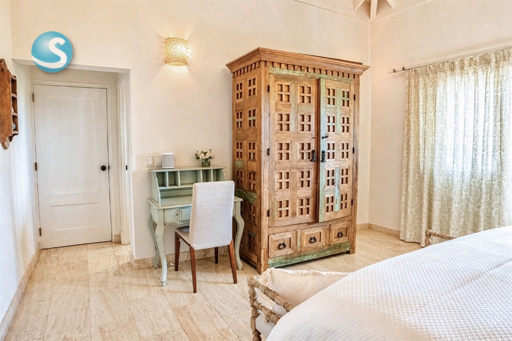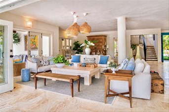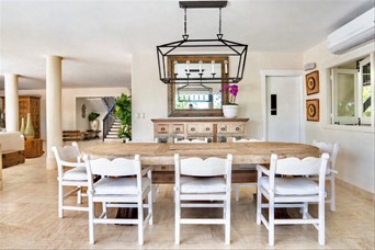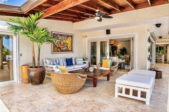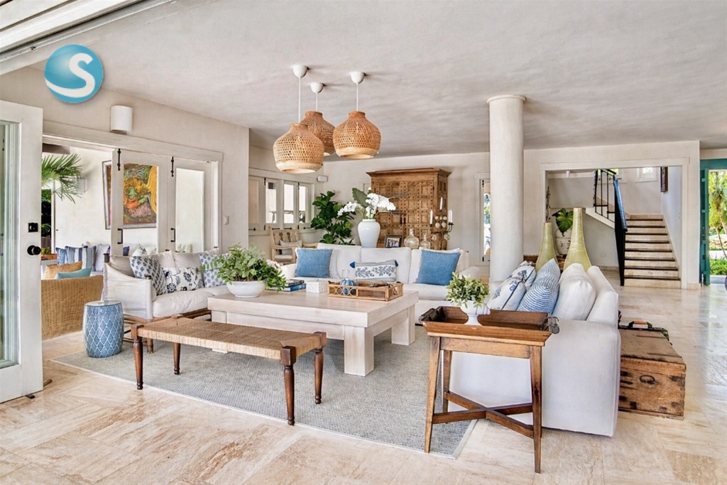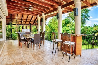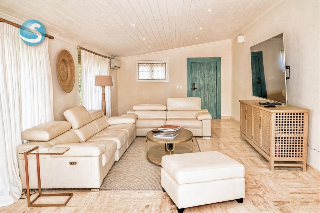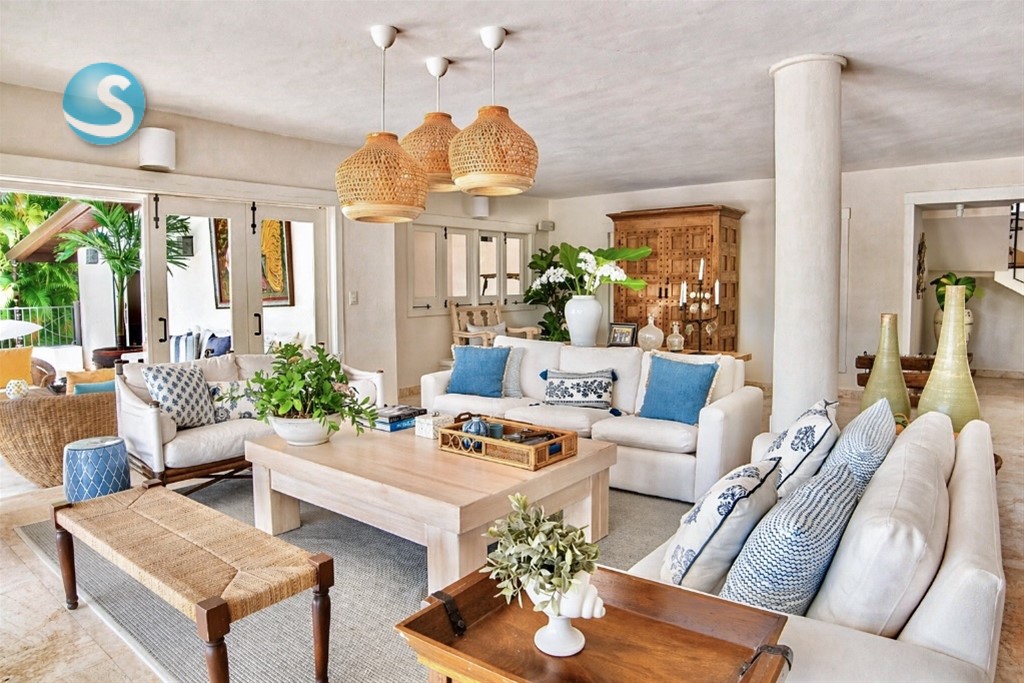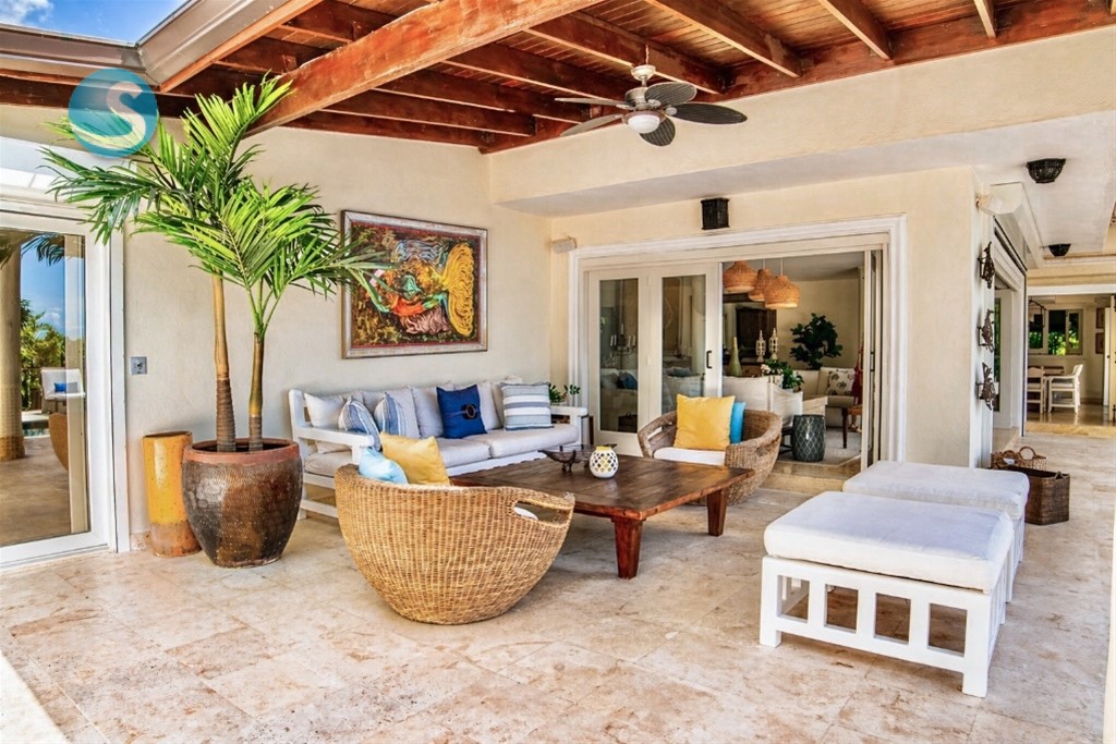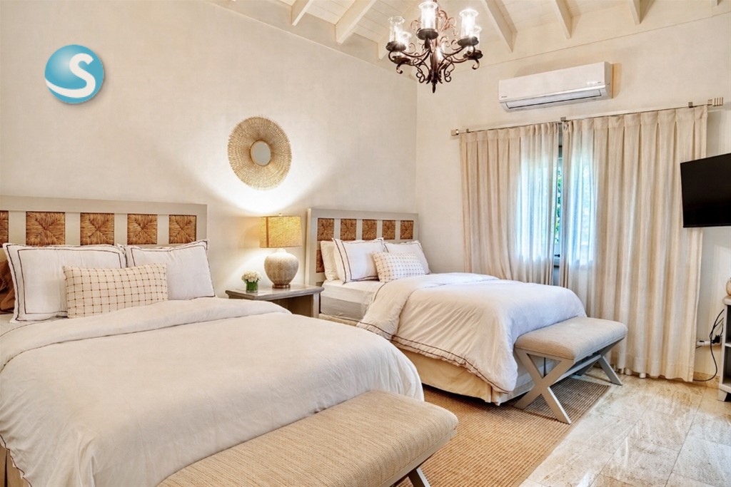 VIlla cerca de las canchas de tenis de dos niveles, un amplio foyer, sala y cómedor Dos cocinas En el segundo nivel dos habitaciones con una cama king y dos con dos camas dobles tipo full, cada una con sus banos closets y abanicos Bar Terraza techada y destechada Piscina y Jacuzzy Amplios jardines Camarera y cocinera Disponible todo el año