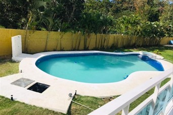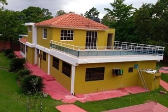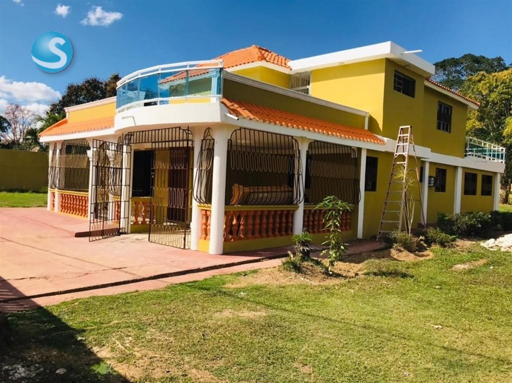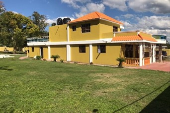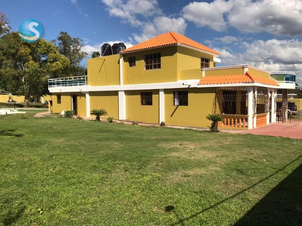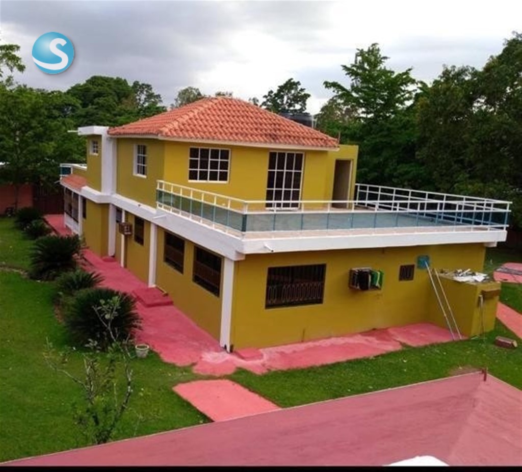 Villa campestre en don juan bayaguana con terreno de 7,304 metros de terreno y 463 mts de construccion en dos plantas. 5 habitaciones 5 banos sala comedor cocina estar galeria area lavado salon actividades balcon tipo terraza piscina cancha area recreacion gazebo