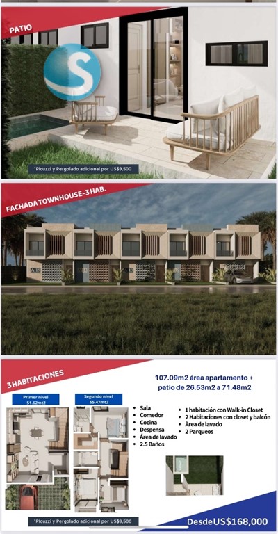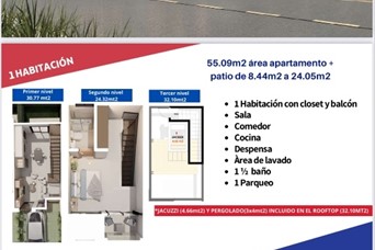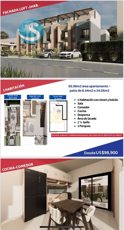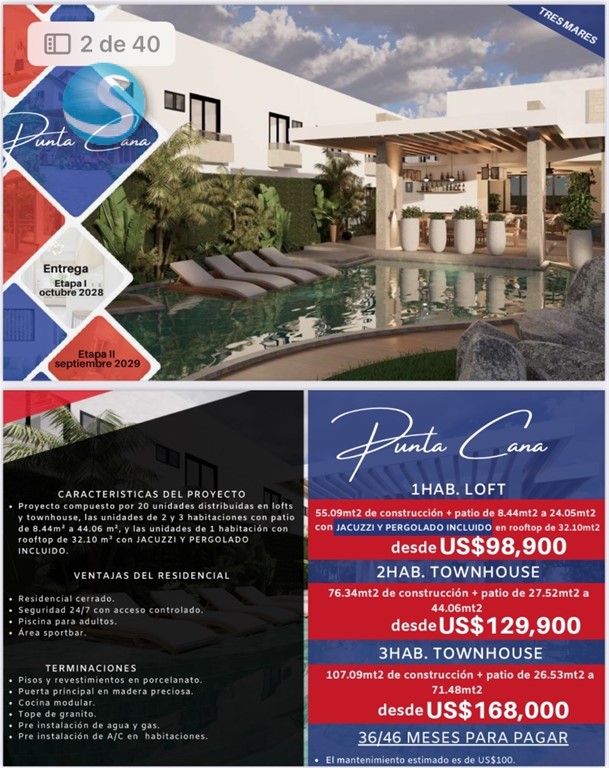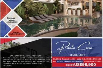 apartamento en punta cana 1-2-3 habitaciones residencial cerrado seguridad 24 hora piscina area sportbar precio desde 98,900 asta 168,000