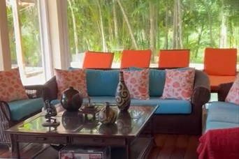 Se alquila amplia y comoda villa con 450 mts de construccion en solar de 1080 mts. con espacio para 12 personas 3dormitorios habitacion principal con cama king habitaciones secundarias con dos cama queen cada una 4 banos sala comedor estudio con sofa cama terraza 8 parqueos cuarto servicios area lavanderia cuarto herramientas impresionante area de patio gazebo bbq piscina con jacuzzi ducha exterior