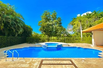 Vendo en juan dolio en el proyecto de guavaberry amplia villa con vista al campo de golf y a pasos de la casa club 3 habitaciones amplias areas sociales y patio piscina y jacuzzi proyecto privado con seguridad, campo de golf y recreacion. us$600,000.00 neg
