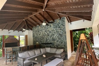 Vendo Villa Amueblada con Vista al Campo de Golf en Guavaberry Country Club, Juan Dolio Código: PD600 -470 Mt2 de Construcción -1353.27 Mt2 de Terreno -4 habitaciones -4.5 baños -Sala -Comedor -Desayunador -Estar familiar -Cocina caliente -Cocina fria -Closet de ropa blanca -Terraza privada -Piscina Privada -Jardín Recibidor -Patio -Asadero -Baños en la Terraza -Área de lavado -Habitación de servicio -8 parqueos TERMINACIONES -Pisos en Cerámica Importada -Madera de Roble -Jambas -Tope de cocina en Granito Italiano -Cornisas en Yeso -Alarma -Screeners -Todo el sistema eléctrico automatizado -Techo doble altura -Shutters en toda la propiedad -Incluye aires acondicionados -Sistema de Gas Industrial CARACTERISTICAS DEL COMPLEJO -Garita de seguridad -Proyecto cerrado -Luz 24 hrs -Cámaras de seguridad -Planta full -Área de Juegos -Gimnasio -Piscina -Canchas -Salón Multiuso -Terraza común -Pozo -Cisterna incluye 1 carros de Golf Precio de Venta: US$560,000.00