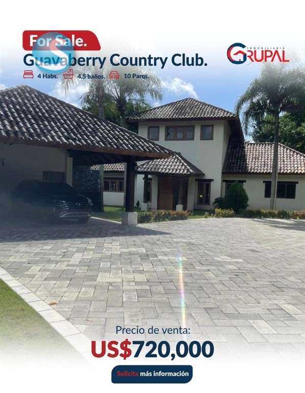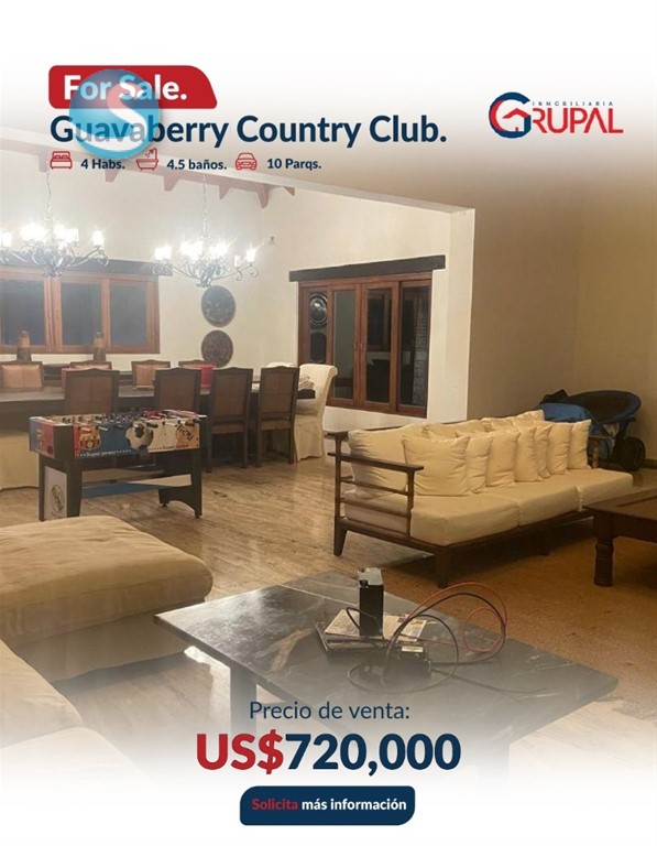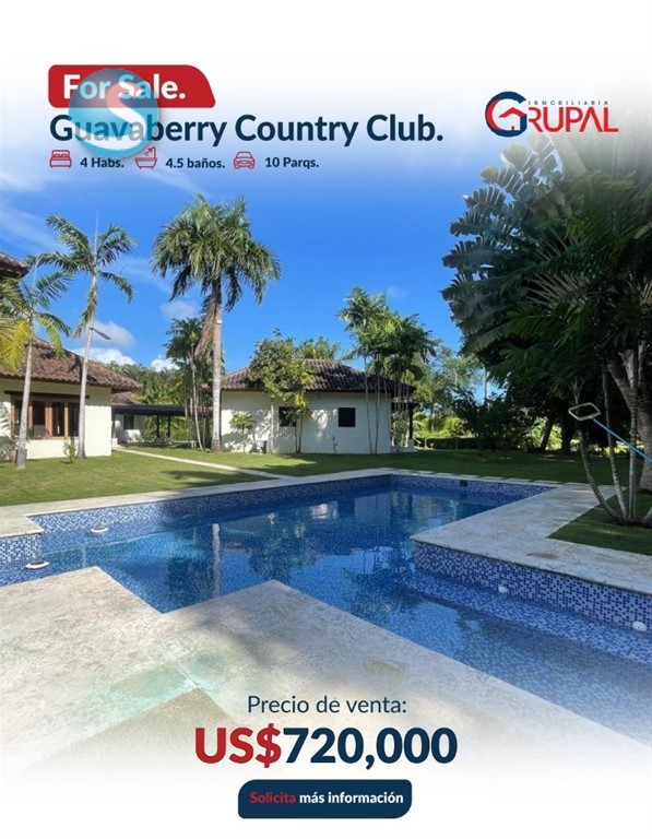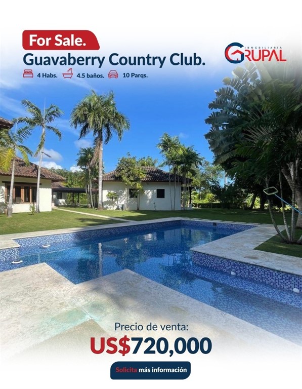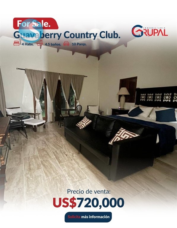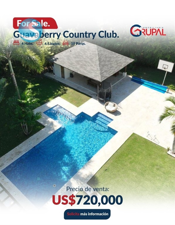 GUAVABERRY Villa tipo resort | Oportunidad estratégica de inversión ?????????????????????????????? ???? ???? ?????????? 4 habitaciones 4.5 baños 15 parqueos Amplia cocina Gazebo Piscina Área de billar Ideal para familias que valoran el confort, la exclusividad y el espacio… o para inversionistas que buscan una propiedad con alto potencial. ???????????? ???? ?????????? US $720,000
