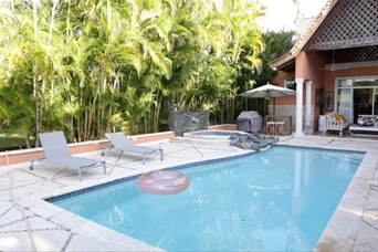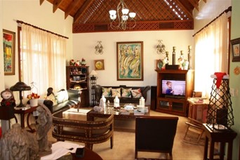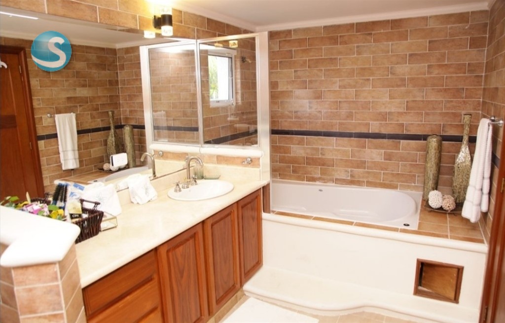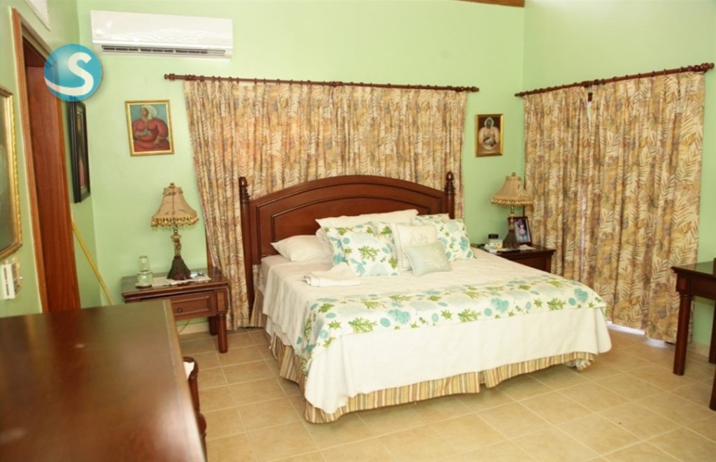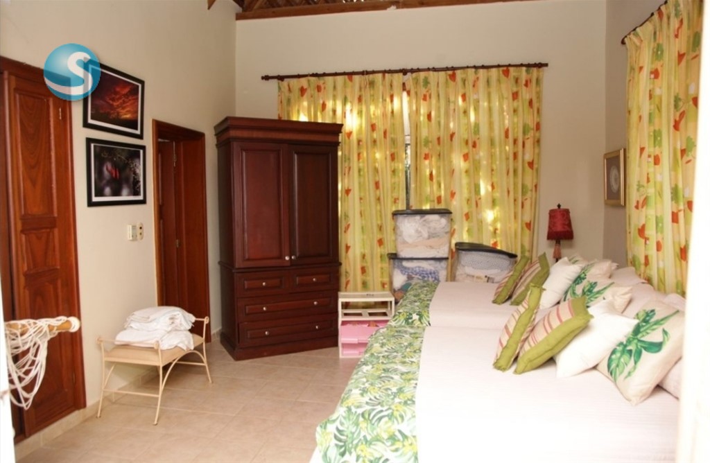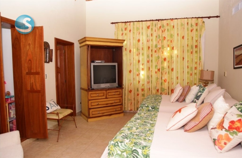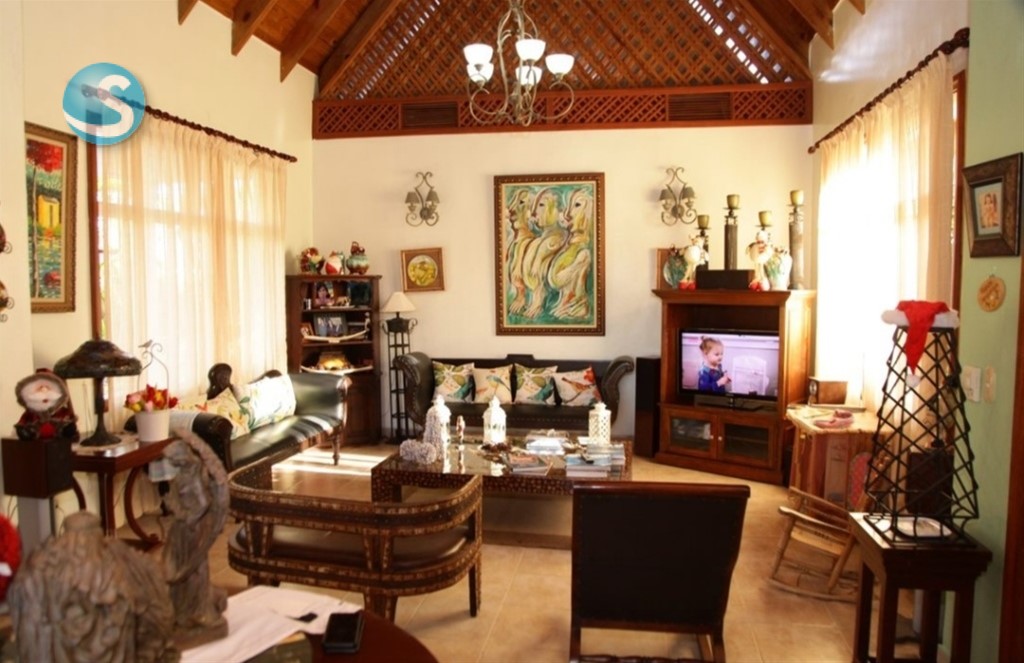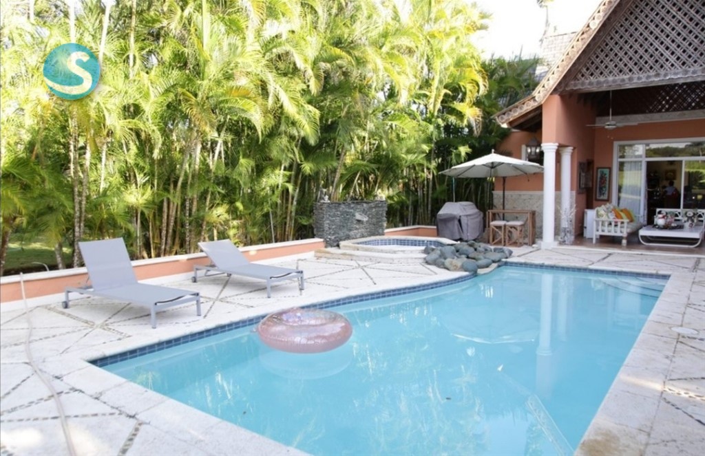 Venta: Excelente Villa en Guavaberry, frente al campo de golf. -1,500 mtrs solar - 320 mtrs constrcn - 3 habitaciones - 3.5 baños - Sala, comedor - Terraza - Patios - Gazebo - Piscina y Jacuzzi - Cocina - Cuarto servicio - Area lavado. Precio US$ 325,000 Código A. Tave