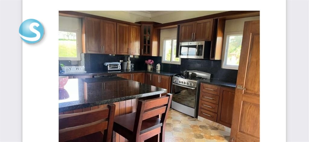 Código 1204 OJO: Solo para clientes directos OJO: Solo se muestra si la persona está en la disposición de firmar una intención de compra antes de ir. Buena Vista Jarabacoa Villa con 3 construcciones disponible para venta. PRECIO DE VENTA US$2,000,000 Ubicación: Las Colinas de Hatillo, Buena Vista, Jarabacoa ? Características de la propiedad principal: • 7 dormitorios, cada uno con baño privado, vestidor y balcón • Área de construcción: 848 m² • Sauna y baño de vapor • Piscina y cenador • Lago artificial con especies de peces exóticas ?? Casa de huéspedes: • 2 habitaciones • Área de construcción: 205 m² ?? Terreno de 20,233.78 m² con producción agrícola: • 800 limoneros persas • Plátanos, aguacates, guanábanas, cerezos, carambolas, jaca y mangos • Gallinero con gallinas criollas • Cría de patos y gansos ? Otros detalles: • Generador de 75 kW • Paneles solares