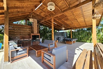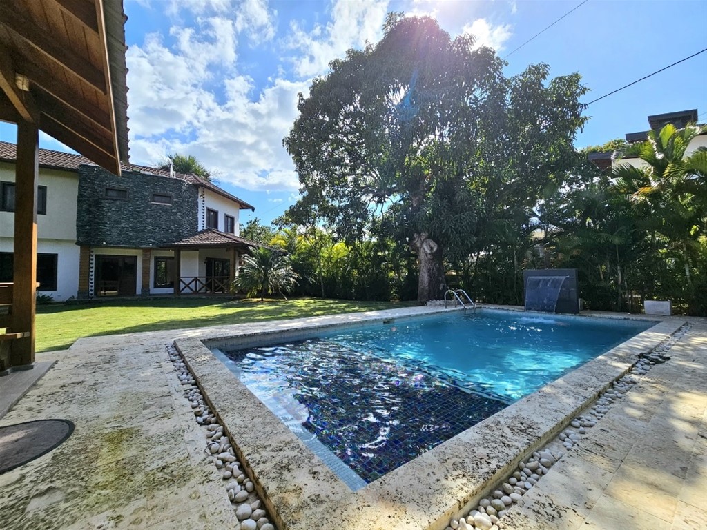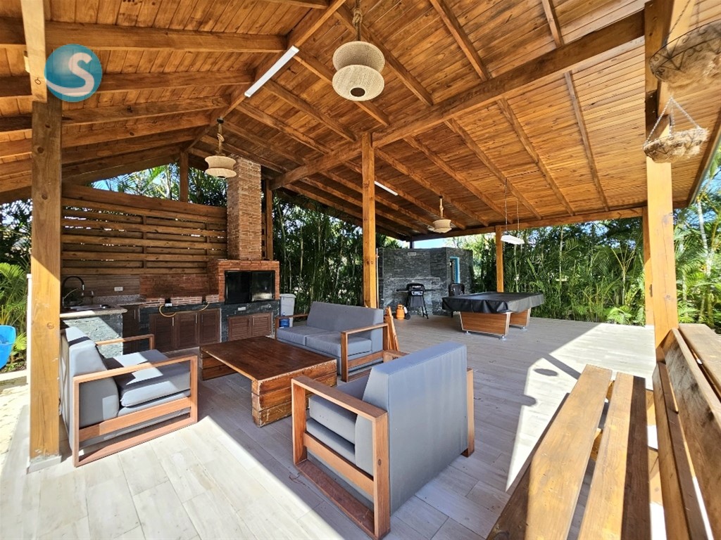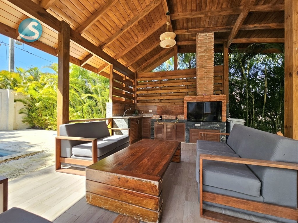 Villa amueblada en venta - Jarabacoa US$350,000.00 267 m² de Construcción 783 m² de terreno 3 Habitaciones 2.5 Baños Cocina con Desayunador Cuarto de Servicio Lavado Terraza Sala - Comedor Gazebo Piscina Area de BBQ