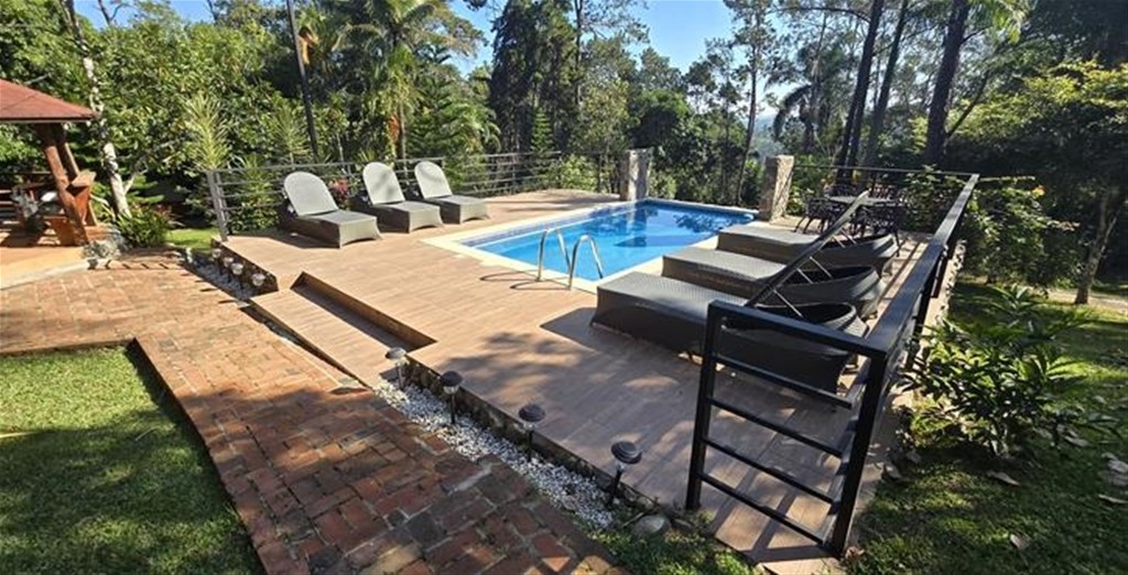 Villa en Jarabacao Con 14,261mt2 y 408.32mt2 de construcción, 7 habitaciones, 6 baños, sala, comedor, cocina, área de lavado, Gazebo, BBQ, Piscina, terraza, balcón, patio español, Garita. Precio $ 38,500,000.00 INFO 809-660-2694