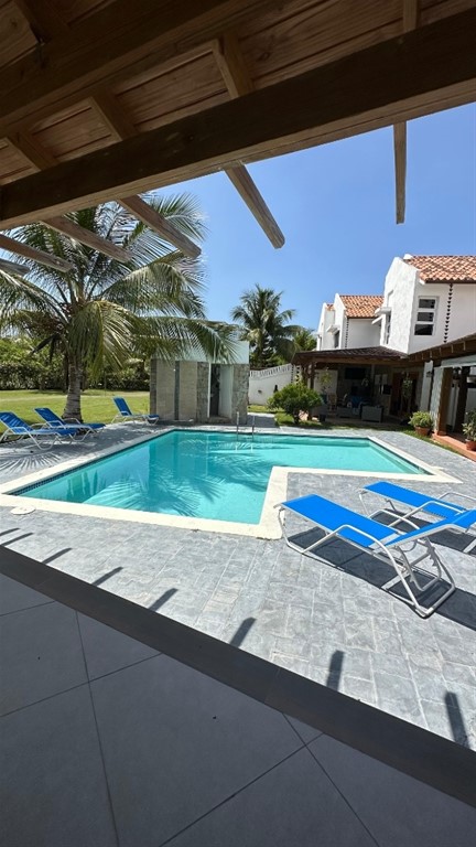 EB-TG1592 Hermosa villa en venta ubicada en Juan Dolio. Distribución de la casa: 1er nivel: - Recibidor - ?baño de visita - Área de Comedor - Sala amplia - Cocina - Mini bar - Terraza techada - Área de bbq - Área de lavadora/secadora - Cuarto de servicio 2do nivel: - baño secundario compartido - ?2 habitaciones secundarias con sus closets - ?habitación principal con walking clóset y baño dentro. - ?clóset de ropa blanca y calentador de agua. Características de la casa: - Mobiliarios incluidos, exceptuando pertenencias personales y otros detalles decorativos. - ? Cámaras de seguridad. - ?Filtro de agua que ayuda a ablandar la dureza del agua en toda la casa. (No es para beber) - ?Shutters en todas las ventanas. - ?Área sociales con jacuzzi, piscina, y gazebo. - ?Acceso al club de playa Café del sol (por ser miembro de metro). - ?Dos parqueos destechados. PRECIO DE VENTA CON LOS BIENES MOBILIARIOS INCLUIDOS $350,000 dólares