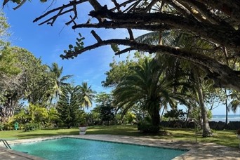 Hermosa propiedad frente al mar con amplio jardin y playa