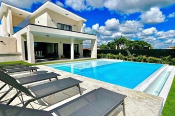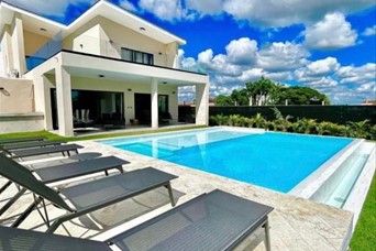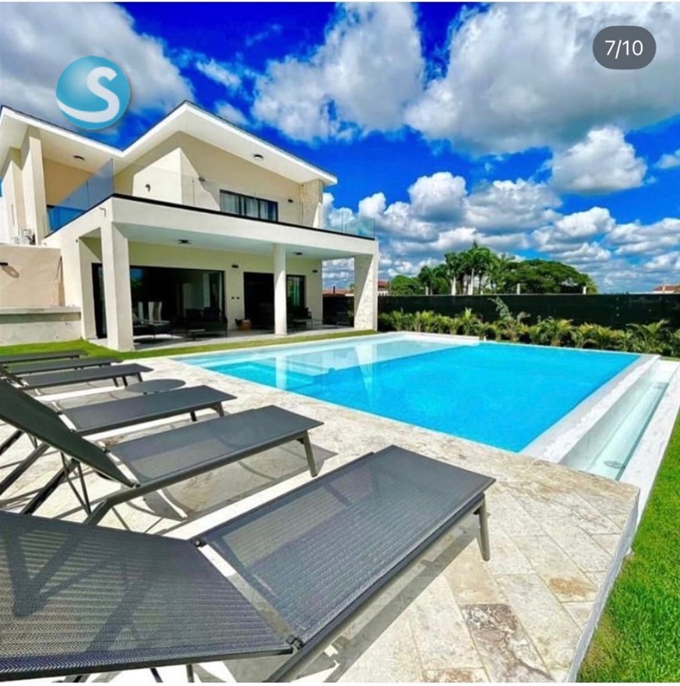 Villa de lujo Amueblada en La Estancia – Primera línea de golf Vive o invierte en una de las comunidades más exclusivas, donde el diseño moderno se combina con la tranquilidad y el estilo de vida de alto nivel frente al campo de golf. 360 m² de construcción 750 m² de terreno Distribución pensada para confort y rentabilidad: * 4 amplias habitaciones, cada una con su baño * Elegante sala y comedor * Baño de visitas * Cocina italiana de alto diseño * Amplias terrazas ideales para entretenimiento * Piscina privada * Mobiliario italiano incluido Precio: US$850,000 Entrega inmediata – lista para disfrutar o rentar