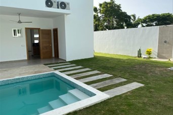 CODIGO:2881 Listo para entrega Townhouse 600 metros hasta playa las Ballenas Características generales :Villa tiene 135 metros construcción - la piscina - Terreno 256 metros cuadrados - Dos niveles - Sala - Cocina - Comedor - Dos habitaciones con closet y baños , y medio baño - Area de lavado - Terraza con techo de pino tratado - 2 Parqueos - Portón eléctrico - Inter- com - Cisterna de agua -Todas las habitaciones están equipadas con aire acondicionado y abanicos - Calentador eléctrico - Pre instalación inversor - Cisterna de agua Terminaciones: - Piso en porcelanato - La cocina tiene electrodomésticos - Puertas y cocina ,mueble de roble - La cocina tope de granito - Los baños tope de granito