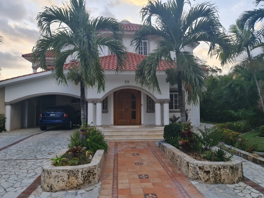 Hermosa y amplia villa en el exclusivo proyecto Metro Country Club, Juan Dolio. Vista al campo de golf 980Mt2 de terreno 580Mt2 de construcción distribuidos en 2 plantas 4 habitaciones 3.5 baños Sala Comedor Cocina con isla Estar Terraza Area de billar Piscina ambientada al trópico Balcón circundante 2da planta Taller de bricolage Sótano para almacen Marquesina para 4 vehículos. *El complejo ofrece:* Demostrada Seguridad 24hrs Campo de Golf Canchas de tenis Area de juegos para niños Club social con: Piscina Bar Restaurant Club de playa Farmacia Mini market