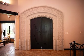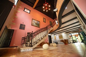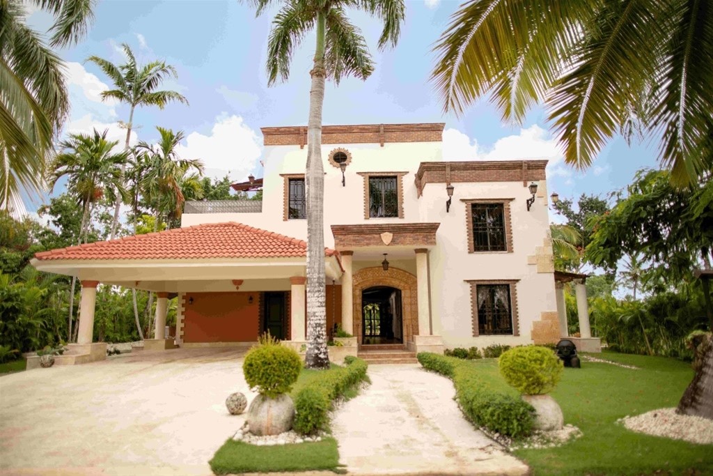 Código:6275 JCP » Villa del Arte Esta maravillosa villa de 600m² construida sobre un terreno de 1000m², está ubicada en el prestigioso Country Club Metropolitano,en Juan Dolio, República Dominicana. La propiedad está ubicada a unos 20 minutos del Aeropuerto Internacional de Las Américas y a 40 minutos de la ciudad de Santo Domingo. Esta villa de ensueño tiene un estilo arquitectónico colonial con rasgos eclécticos que le dan un carácter fuerte pero al mismo tiempo muy acogedor. Nos da la bienvenida con un esplendido portal de entrada una replica de la famosa casa del cordón en la ciudad colonial una cómoda marquesina hecha en piedra coralina y un pozo. Sí, un pozo, característica especial que convierten la villa en una propiedad verdaderamente única.