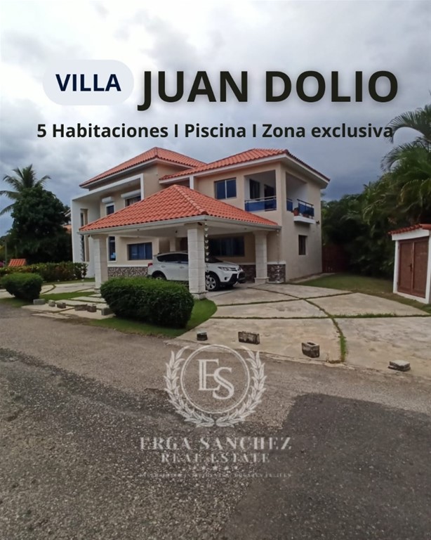 Se VENDE VILA, EXCELENTE OPORTUNIDAD en una zona Exclusiva de JUAN DOLIO compuesta por dos niveles. CARACTERISTICAS Y AMENIDADES: Sala Comedor Medio baño Cocina 5 habitaciones cada una con su baño, walking closet y balcón (en el segundo nivel) Área de servicio con cuarto de servicio Amplia terraza Un recibidor y una pequeña cocina en la parte derecha Área de estar Área de recreación con gazebo, piscina y un pequeño baño para acceso antes de entrar a la piscina Marquesina Con cercanía a a la playa Pisos en porcelanato interior y coralina en el exterior, gaveteros y tope de cocina de Caoba y granito, baños recubiertos en cerámica, ventanas de aluminio y vidrio y puerta de madera preciosa 1,218.65 metros cuadrados. Precio RD$: 41,713,784.76 Precio USD$: 749,706.13 (Aproximadamente)