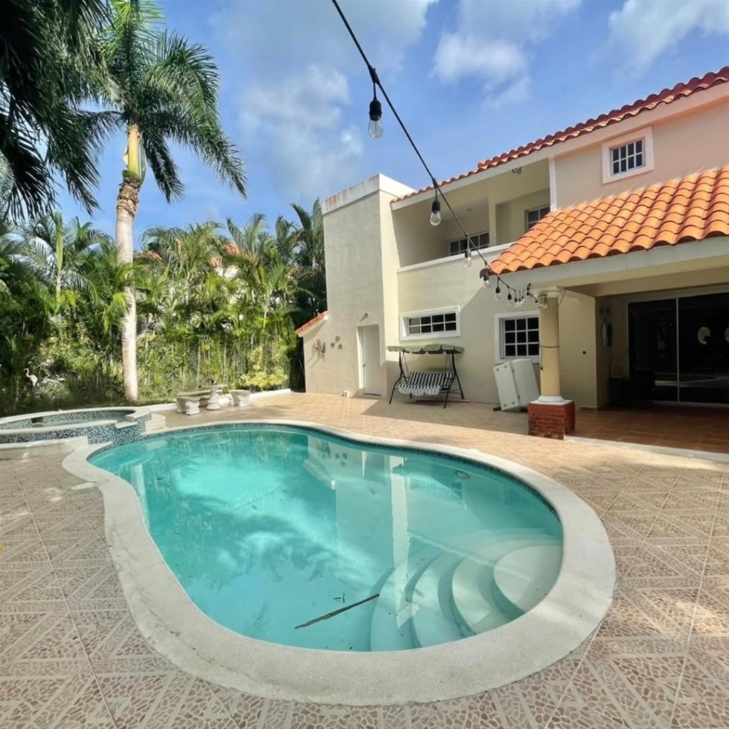 ¡Preciosa Villa de esquina! Metro Country Club Jardín frontal 823 mts solar 500 mts de construcción 2 niveles Hermosa escalera hacia el segundo nivel *5 habitaciones (1 en primer nivel y 4 en segundo nivel todas con baño y wc) algunas con balcón *Varias Salas *Comedor *Terraza *Cocina *Area lavado *Patio *Jardín *Piscina *Jacuzzi *Baño de piscina *Locker __________________________________________ De oportunidad Rebajada de US$580lil A US$450mil También se renta US$2,500. Para más información contactar al señor Maxi Hache +1 (849)-591-0699
