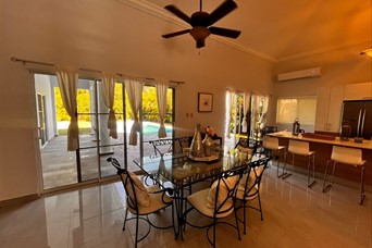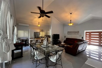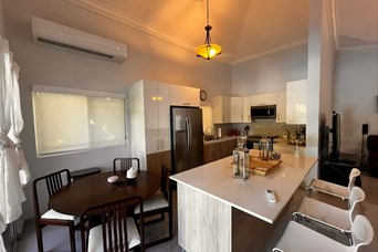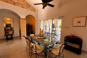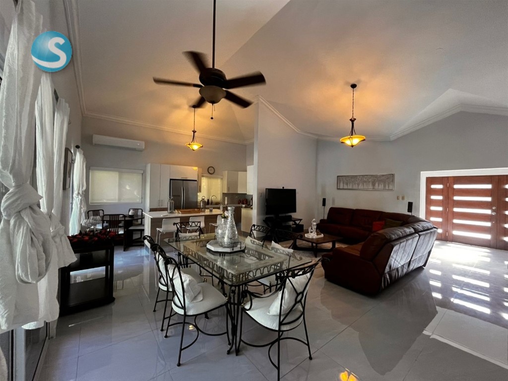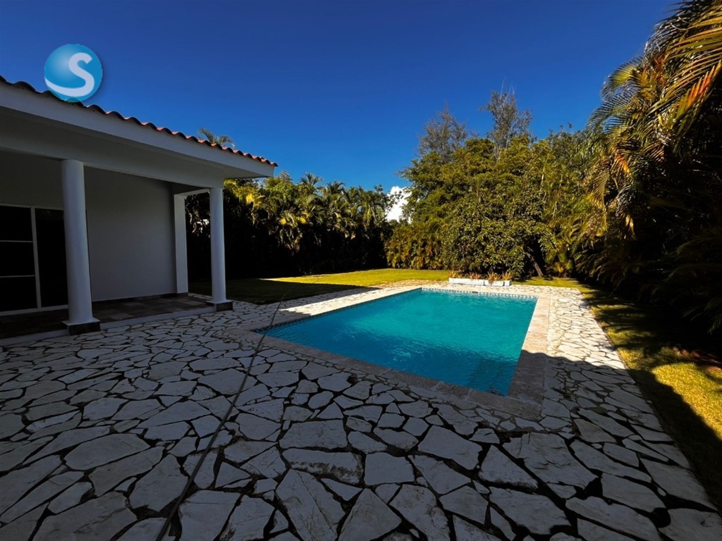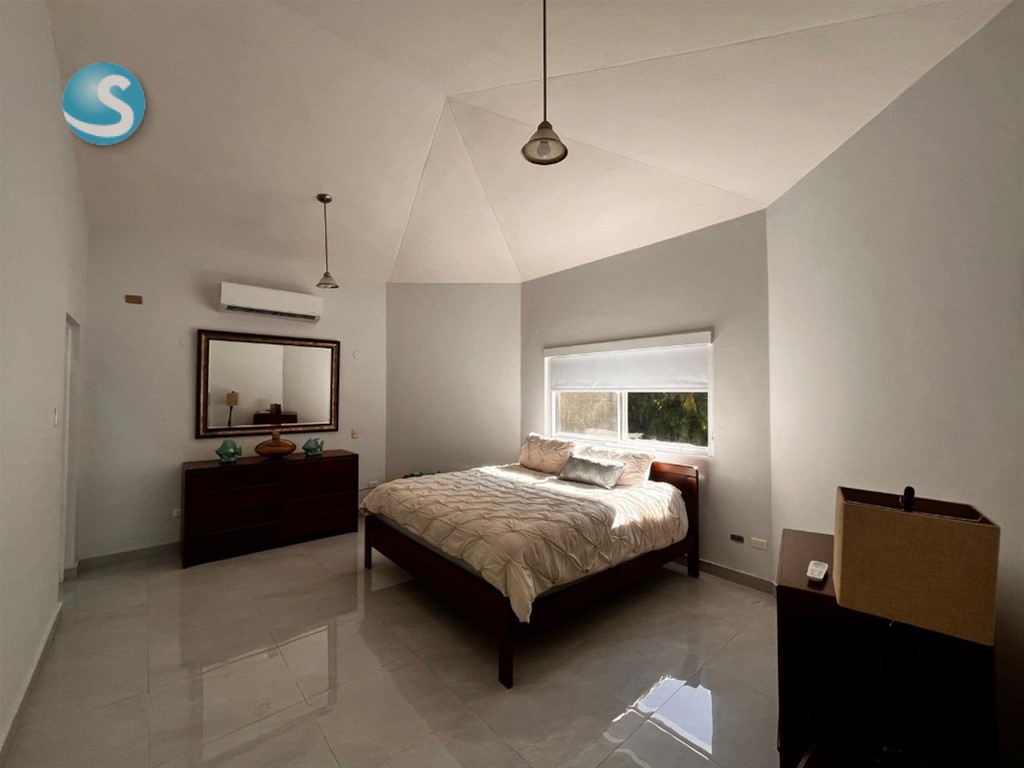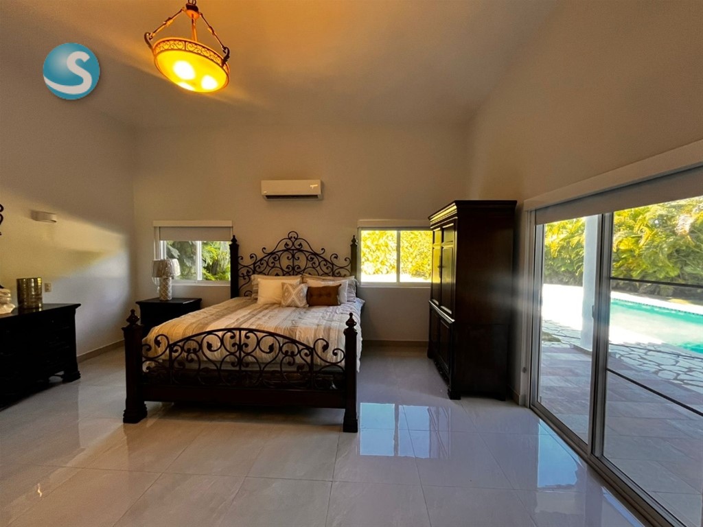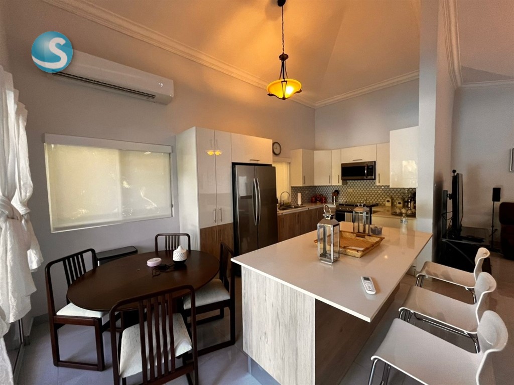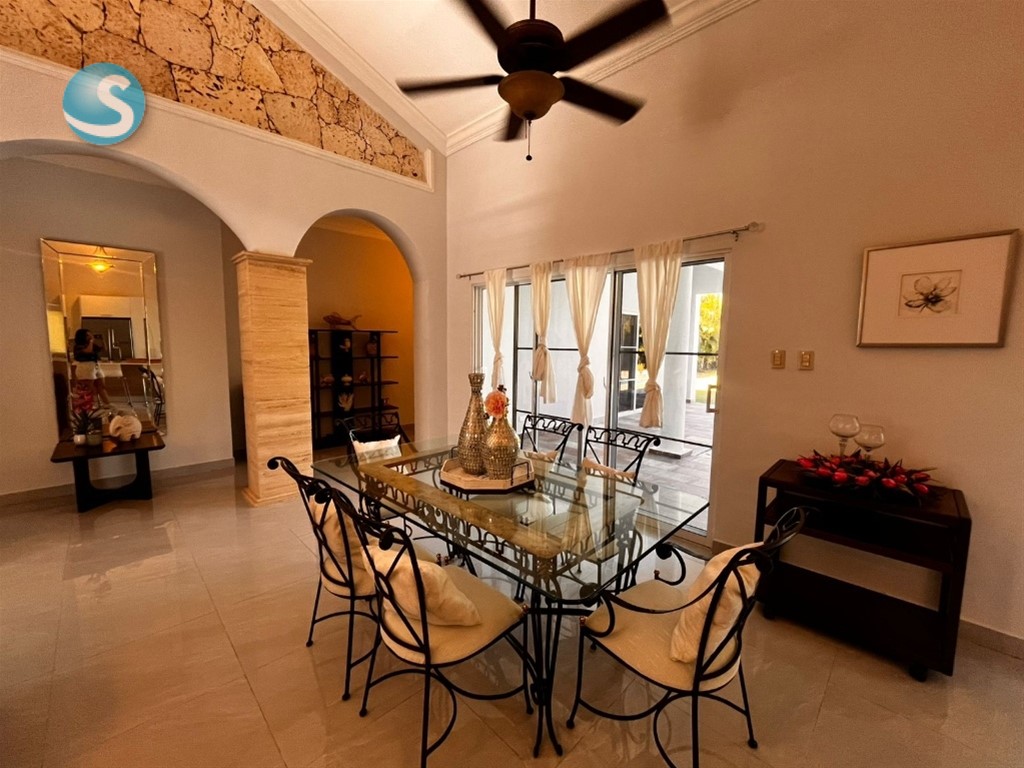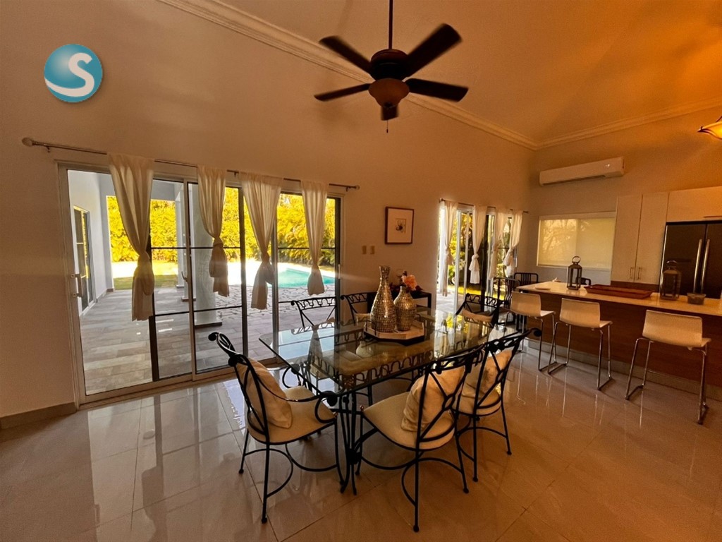 Espectacular villa amueblada con piscina ??? Habitaciones: 3 (cada una con baño privado) ? ?? Baños: 3 completos y medio baño de visitas ? ?? Parqueos: 4 espaciosos parqueos techados o semitechados ? ?? Construcción: 268 m² ? ?? Terreno: 900 m² de solar ? Amenidades destacadas: • Piscina privada ideal para el disfrute familiar y social ? • Terraza exclusiva y jardín privado con vista al Campo de golf. • Proyecto cerrado con vigilancia 24 h para tranquilidad y seguridad plena ? • Casa club, campo de golf, club de playa privado y canchas de tenis dentro del complejo — todo al alcance. ? • Cocina con desayunador, línea blanca completa, área de lavado y estacionamiento techado.