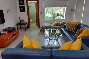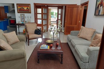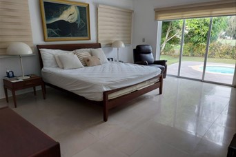 Villa Exclusiva y Amueblada en Metro Country Club, Juan Dolio Esta es una espléndida y moderna Vivienda Unifamiliar (Villa Vacacional) ubicada en el prestigioso sector Metro Country Club, Juan Dolio. La propiedad presenta un estilo de construcción moderno, y está amueblada. Disfrute de la exclusividad en una parcela de 795.55 Mts.² de terreno con una construcción principal de 315.34 Mts.². Su ubicación es privilegiada, ya que colinda directamente con el Campo de Golf. Distribución y Comodidades: La villa, de un solo nivel, ofrece una distribución funcional y espaciosa: Cuenta con tres (3) habitaciones con sus respectivos baños completos. Adicionalmente, dispone de una Sala Estar Familiar (Estar) con su propio baño, que puede funcionar como una cuarta habitación/estudio. Las áreas sociales incluyen Sala, Comedor, un medio baño de visita Cocina con desayunador. Area de servicio, posee un Cuarto de Servicio con su baño, Área de Lavado . depósito interno y Closet de ropa blanca. Exteriores y Amenidades de Lujo: Los exteriores están diseñados para el esparcimiento y el disfrute. Destaca la Piscina con sus equipos y un Jacuzzi, complementada por una amplia Terraza Techada que da al área de la piscina y un Gazebo. Cuenta con áreas de jardines y una Marquesina (estacionamiento cubierto) con capacidad para dos (2) vehículos. Equipamiento y Terminaciones: La villa posee terminaciones de primera. Los pisos interiores son de porcelanato importado. La cocina tiene gabinetes modulares laminados MDF y tope de Granito Natural. Las puertas (principal, interiores y closets) son de madera preciosa. El techo es aligerado a cuatro aguas con teja de barro. Para la seguridad, cuenta con sistemas de cámaras de seguridad y alarma, dentro de un proyecto cerrado. Incluye aires acondicionados tipo Split Inverter en las habitaciones, calentadores de agua individuales, un Inversor instalado de 3.00 Kv y un sistema ultravioleta para la calidad del agua. Adicionalmente, se incluye un carro de golf en la venta. Entorno del Club: Ubicada en una localidad con naturaleza turística y nivel socioeconómico Media Alta, la villa se beneficia de la proximidad a la Casa Club y de la infraestructura del Metro Country Club. La zona posee calles pavimentadas, alumbrado eléctrico, agua potable y seguridad. Es una zona con alto nivel de interés de renta turística.