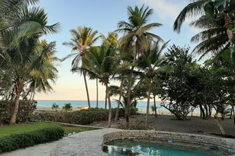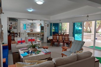Propiedad Playa Linda. Nizao Construcción de concreto a 2 niveles. 3 habitaciones con sus baños. Cada una con aire acondicionado. Balcón delantero. Área de family room en el segundo piso. Sala, Comedor, cocina fría. Aire acondicionado. Patio adoquinado con coralinas y frondosa vegetación. Cocina caliente fuera de la casa. Habitación con su baño para el servicio. Área de piscina con dos baños y duchas en el exterior. 16 paneles solares Pozo para riego del Jardín. Cisterna de 13,000 mil galones. Protección contra huracanes. Fortines. Propiedad con su título al día. Impuestos al día. Área de terreno 1,360 mts. Área de contruccion: 380 mts. Muebles no incluidos. Precio de venta: USD$340,000.00.