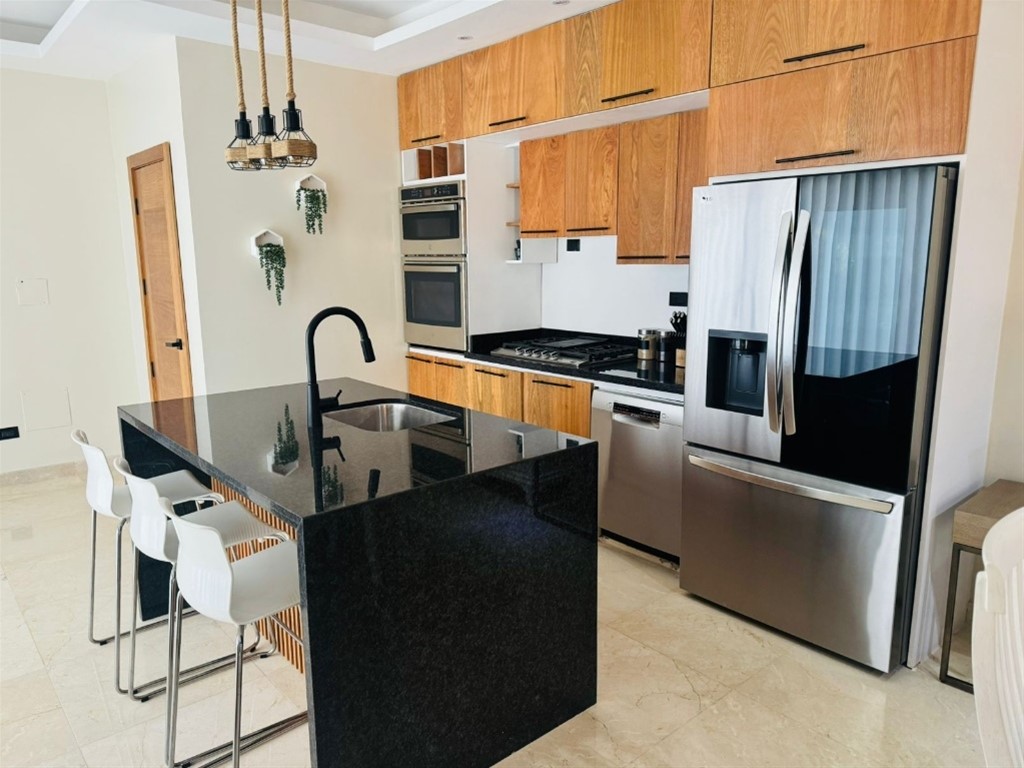 Espectacular Villa de alquiler Finamente amueblada Recibidor Sala Comedor Cocina con desayunador, vista a la piscina 3 habitaciones 3 1/2 baños Sala de Estar Estacionamiento para 6 vehículos Piscina Amplio patio Shutter AMENIDADES EXCLUSIVAS DEL COMPLEJO TURISTICO PLAYA NUEVA ROMANA Campo de Golf PGA Actividades acuáticas Restaurante con excelente gastronomía Beach Club Gym Alrededor de 2 kilómetros de playa Spa y masajes Área de Yoga Área de juegos Servicios básicos las 24 horas Extensión de la clínica Hospiten Dos hoteles 5 estrellas US$3,500.00 dólares