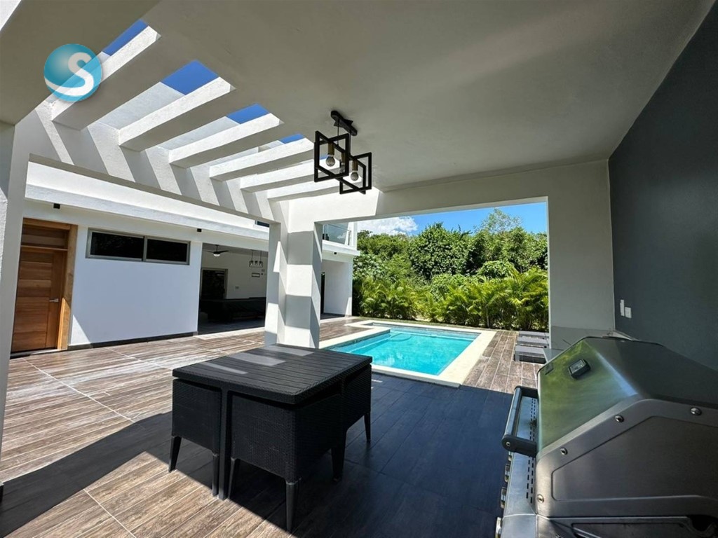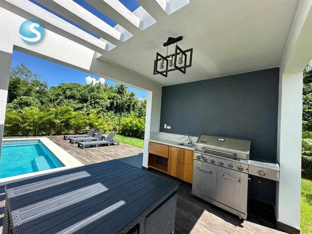 Vacaciona, vive e invierte en Playa Romana Nueva, en nuestras Villas para mudarte a pasos de la playa. Automáticamente con el pago del mantenimiento obtienes la membresía del complejo Playa Nueva Romana y podrás utilizar su playa privada y sus espaciosas y variadas áreas deportivas y recreativas, tales como, Beach Club, Piscinas, gimnasio, canchas de tenis y paddle, zonas de descanso, áreas verdes cuidadosamente diseñadas y espacios sociales y de eventos. También contamos con tiendas, centro de salud, restaurantes, pizzería, hoteles familiares y de adultos y todo esto con seguridad 24//7 y rodeado del exclusivo campo de golf PGA y Golf Club. Además la villa esta recién construida con terminaciones modernas, sistema inteligente de luces, cámaras, Aires acondicionados en todas las áreas. 515.00mt2 de terreno y 390.00mt2 de construcción. Con 4 habitaciones, más cuarto de servicio. 1er nivel: - Marquesina doble - ?Jardín en frente - galería - recibidor - sala - medio baño de visitas - habitación de huésped con baño - comedor - cocina con desayunador - área de lavado - cuarto de servicio con baño - terraza amplia - piscina - patio - área BBQ 2do nivel - habitación principal con walking closet, baño y balcón con vista a la piscina - 1 habitación con su baño adentro - 1 habitación con el baño afuera Nota: El precio incluye todos los aires acondicionados y facilidades como gas, equipos de la piscina, calentadores de agua, Area de BBQ equipada. Has tu cita virtual o presencial para presentarte nuestras opciones disponibles en venta en dicho complejo. Precio: US$635,000.00