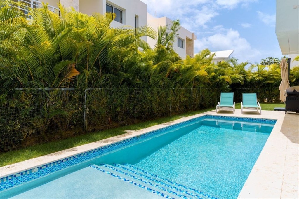 Punta Cana Village MC-RSD9CDBCEV 268 mts de construcción 1,040 mts de solar 3 habitaciones 3.5 baños Cocina Sala Comedor Estudio Cuarto de ropa blanca Habitación de servicio Área de lavado Piscina Jardín 5 parqueos Precio de venta amueblado: $750,000