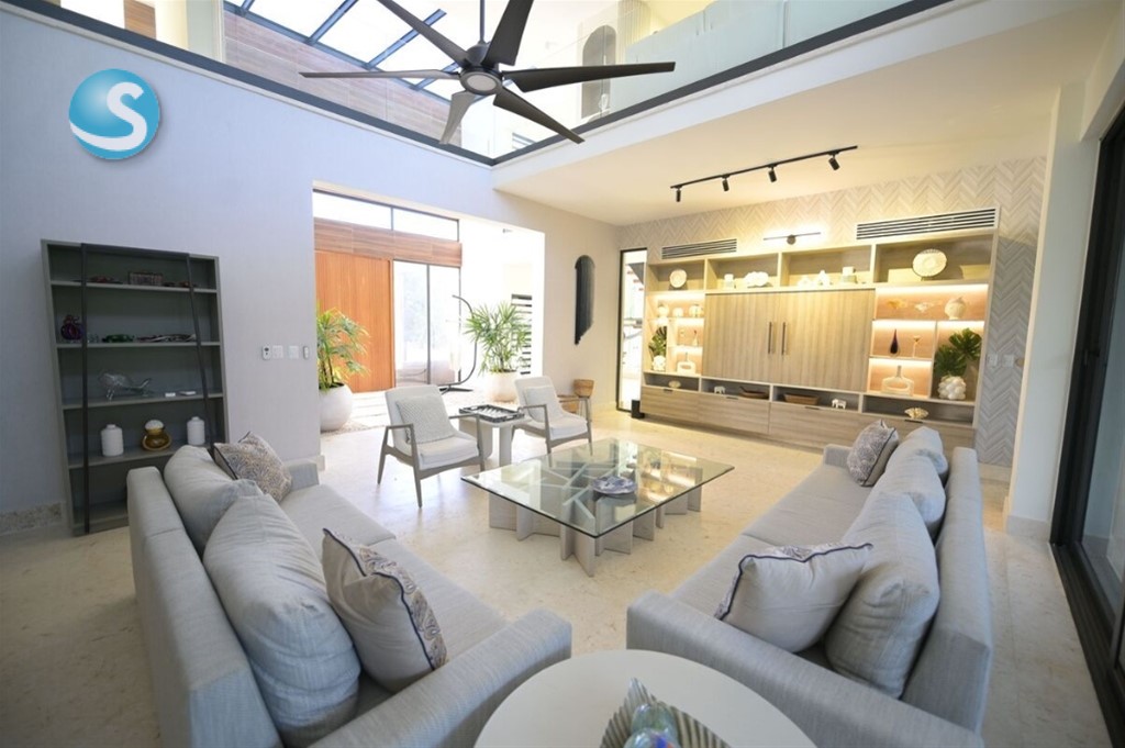 Ven y Descubre esta Majestuosa e Impresionante Villa en Punta Cana Village. Área del terreno: 651.36 m² Área de construcción: 606.15 m² Año de construcción: Enero 2023 Características Finamente Amueblada y conTerminaciones de primera Patio Interior / Recibidor con skylight ma´s de 7m altura. Sala (doble altura) 5 habitaciones cada una con su walking-closet y baño. Amplias Terrazas en el 1er. y 2do nivel. Estar Familiar con a´rea de Bar y TV. Amplia Cocina y Comedor. 1/2 ban o de visitas. A´rea de Lavado. Cuarto de Servicio. Estacionamiento para 4 y hasta 6 vehículos. Beneficios Adicionales Colegios internacionales, supermercados, restaurantes y áreas recreativas a minutos de distancia. Acceso a Puntacana Resort & Club al club de playa privada. Playa Blanca con descuento. Comunidad tranquila y segura, ideal para familias e inversores. Seguridad 24/7 Contactame para ofrecerte mayores detalles.