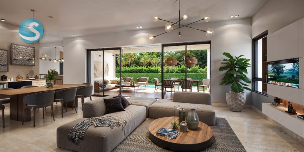 Punta Cana Villague Una villa que supera expectativas. 4 habitaciones tipo suite con baño y vestidor, espacios amplios y un diseño pensado para impresionar: sala y comedor elegantes, doble cocina, terrazas en ambos niveles y una piscina espectacular con deck y jardín. Marquesina para 4 vehículos y opción de 5ta habitación. Un nivel de vida que no todos pueden alcanzar.