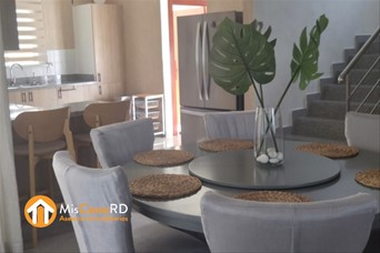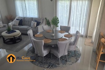 Hermosa Villa amueblada en Alquiler en Punta Cana Disfruta de la comodidad y amplitud de esta villa amueblada ubicada en un residencial cerrado, ideal para vivir con tranquilidad y estilo. Características principales: Sala y comedor Estudio Cocina moderna 2 niveles 1 baño completo en el primer nivel Habitación principal con balcón y baño privado Baño común en el segundo nivel 2 habitaciones secundarias Sala familiar en el segundo nivel Área de lavado Cuarto de servicio Patio privado Hermosa fachada Residencial familiar Área infantil Alquiler: US$2,000 Mantenimiento incluido Ubicación: Punta Cana Perfecta para familias que buscan confort, seguridad y cercanía a las mejores amenidades de la zona.