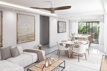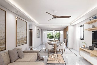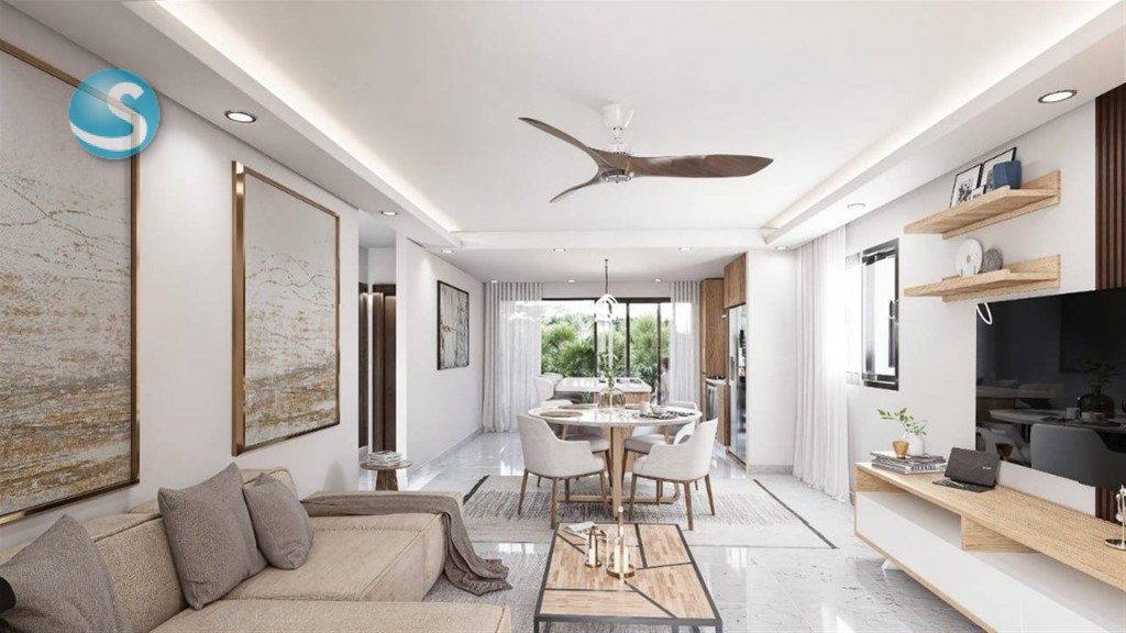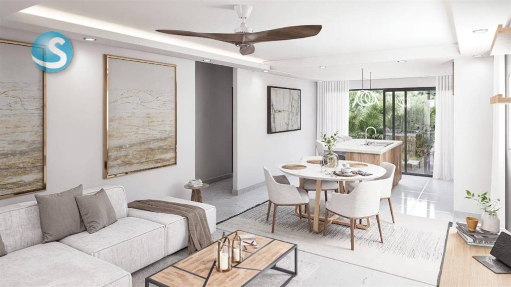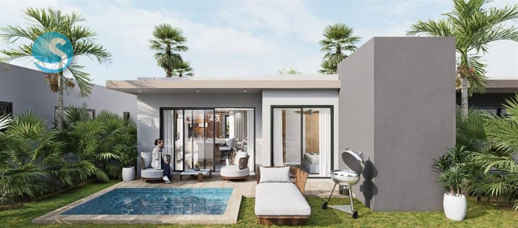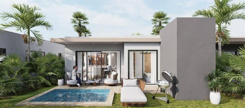 Villas en la exclusiva zona de Punta Cana Precios desde US$120,000 hasta US$153,000,00 Villas tipo A y B Descubre la comodidad y el diseño moderno en esta hermosa villa de un nivel, ideal para quienes buscan tranquilidad, funcionalidad y estilo en un solo espacio. Características Generales Solar de 189 hasta 215 m² Construcción desde 80 hasta 117 m² Diseño de 1 nivel y de 2 niveles Distribución 2 habitaciones y 3 Habitaciones Habitación principal con baño y walking closet 1/2 baño para visitas Sala y comedor con vista y acceso al patio Cocina moderna con isla Área de lavado Amplio patio y área de jardín Comodidades Pre-instalación de aire acondicionado Piscina (opcional) Terminaciones de Alta Calidad Pisos y revestimientos en porcelanato europeo Grifería en acero inoxidable color negro Topes y backsplash en granito natural Puertas en madera preciosa (Jequitibá) Ventanales en perfilería P92 color negro Cocina modular en MDF laminado Accesorios de baño en porcelana europea Opciones Adicionales Piscina Pérgola Terraza Desglose de Áreas Área de construcción: desde 69.35 hasta 116.77 m² Información Maria Canchica 809-995-5805 849-273-5805