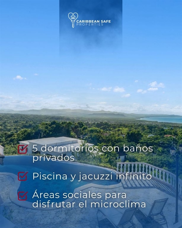 + Villa disponible en Río San Juan: Un Tesoro Único en la Montaña Imagina despertar en la cima de la verde montaña de Río San Juan, donde cada amanecer regala un espectáculo natural: el sol reflejado en el Atlántico, los cruceros navegando en la distancia y el canto de las aves componiendo la banda sonora de tu día. Esta exclusiva villa estilo castillo, erigida sobre sólida roca y rodeada de un exuberante jardín tropical con árboles frutales, no es solo una propiedad… es una obra de arte habitable. Ubicada a menos de 7 minutos del centro del pueblo y de la mágica Laguna Gri-Gri, dentro de un residencial cerrado con servicios de estándar europeo: -Agua independiente -Electricidad soterrada -Sistema moderno de ahorro energético, conectado al sistema de eléctrico Características que la hacen inigualable: - Tres villas integradas con diseño artístico y vistas panorámicas -5 dormitorios con baños independientes y espectaculares paisajes -Piscina y jacuzzi con efecto infinito hacia el mar y las montañas -Terrazas que invitan a contemplar los atardeceres más impresionantes -Se vende totalmente amueblada, lista para mudarte y disfrutar Aquí no vendemos una villa… buscamos a la familia indicada para continuar la historia de este lugar mágico: amantes de la paz, de los amaneceres dorados, de la brisa fresca de la montaña y de la belleza natural en su máxima expresión. Y lo más sorprendente: podrás adquirir esta joya por el precio de un apartamento en cualquier ciudad de República Dominicana. Si este estilo de vida resuena contigo, no esperes más. Contáctanos y ven a descubrir la experiencia indescriptible que solo este castillo en las alturas puede regalarte.