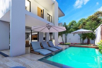 Citymax Santo Domingo tiene a la Venta Nuevo Proyecto de Hermosas villas con vista al mar cerrado de solo 7 Villas. Separa con tan solo USD$5,000 Descripción de la Villa: 300 metros de solar 126 metros de construcción 75 metros del exterior Habitación principal con Walkin closet y baño. 2 habitaciones con baños y closet Sala concepto abierto Comedor Cocina concepto abierto con desayunador medio baño Área de Lavado y despensa Jardín Piscina Espacio para BBQ 2 parqueos Terminaciones en yeso Portón en Hierro Cisterna clave interna PVC-031-05-25
