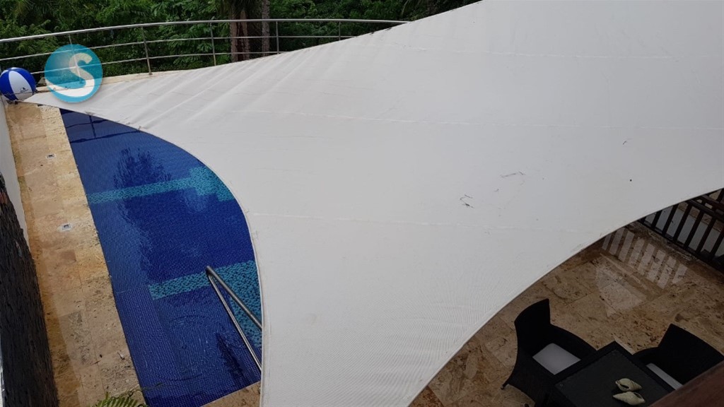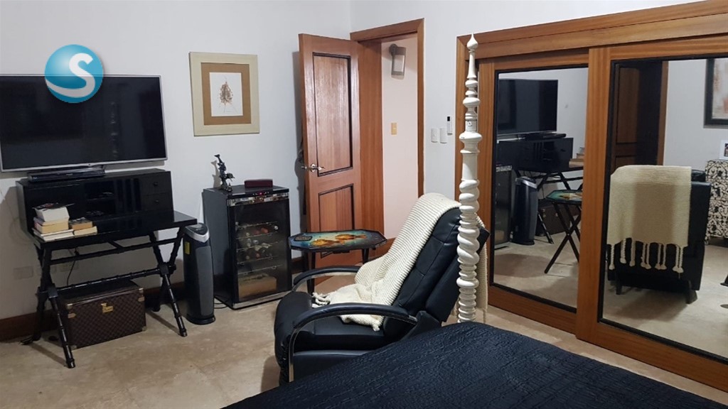 Terreno: 800 mt2 Construccion: 765 mt2 M2 de Construccion : 1998 Marquesina para 5 vehiculos Interior casa: Primer Nivel: Hall, Amplia sala doble Altura 7.5mt, sala de proyeccion, comedor, Estudio, Baño, 1 habitacion que baja al Sotano, Cocina, Area de servicio, HB servicio con Baño, area de lavado, Baño para chofer y Sotano para guardar herramientas, pinturas etc., Amplia terraza con comedor, piscina. Segundo Nivel: Hab. Princ.con Baño y jacuzzi y walking closet. Techo doble altura Hab.2 con Bn, y techo Doble altura (Varones) Hab.3 con Bn. (Hembra) Sala estar