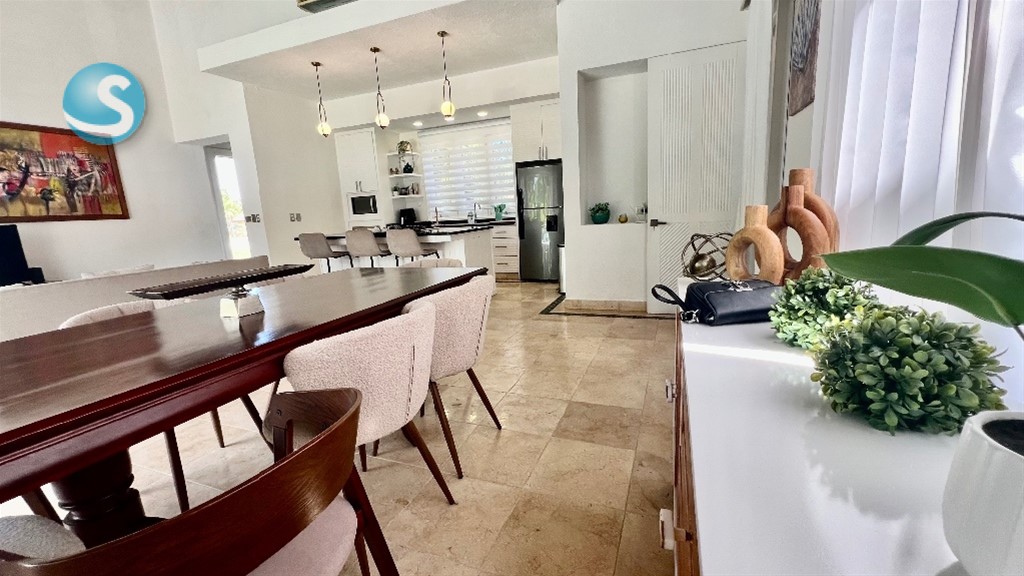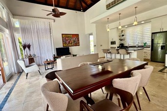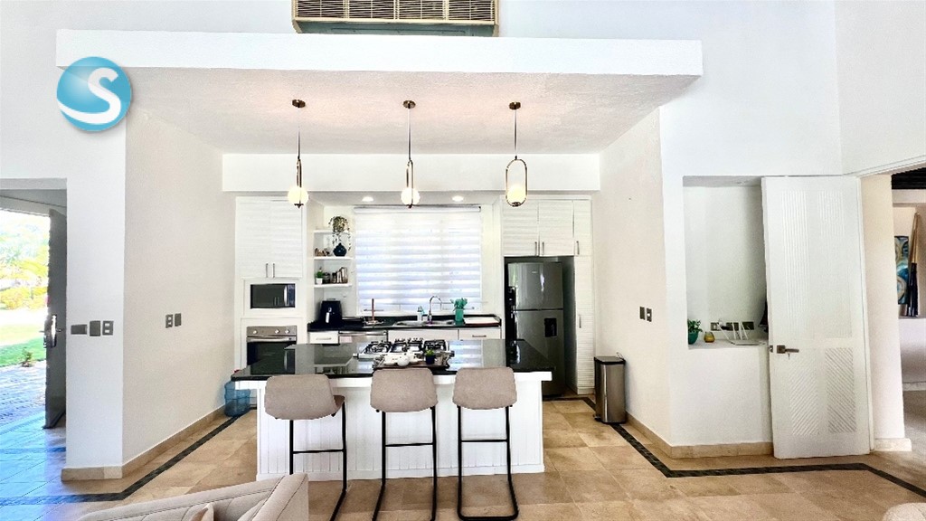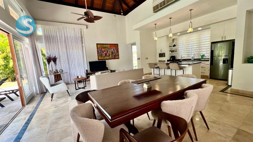 En Cap Cana, En Green Village, te espera esta bella Villa, Si deseas estar rodeado de paz y tranquilidad en donde solo escuches pajaritos, este es el lugar perfecto para ti sólo tres minutos de playa, nueve minutos del Centro y 11 minutos del aeropuerto, el lugar, perfecto para ti, con muy buenos vecinos. Características: 1050 m de patio 450 m de construcción Patio con grama y cancha de fútbol Tres habitaciones 3 Baños Amplia sala, de doble altura Cocina abierta Picuzzi Billar Baño, turco Alentador de agua 2 Parqueos Esta propiedad tiene el derecho de disfrute de todas las amenidades y facilidades de Cap Cana. ID 3579