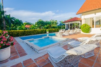 Se Vende o Alquilla Villa en Casa de Campo completamente amueblada. Características: - 7,980 metros de terreno - 1,207 metros de construcción - Construcción en Hormigón Armado Completo. - 7 habitaciones, dos de ellas ejecutivas. Cada una con amplio Baño - 2 amplias habitaciones servicios. - 10 baños - Totalmente Amueblada - Recibidor - Sala y 2 comedores: uno de 6 sillas y uno de 14 sillas - 1 Amplia cocina - Piscina y Jacuzzi con Calentador - Terminaciones en Mármol, Caoba y Roble. - Sala con Estar Familiar, Bar y Billar