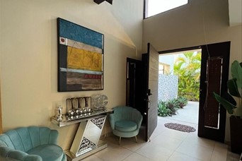Descripción Hermosa villa en venta y alquiler en Guavabery Exclusivo residencial | 650 m² de construcción | Seguridad 24/7 Una villa amplia, elegante y lista para mudarte, ubicada en uno de los residenciales más exclusivos de Juan Dolio. Perfecta para disfrutar de la tranquilidad, las áreas verdes y el confort que mereces. 3 dormitorios, cada uno con su baño Baño de visita + habitación de servicio con baño Sala, comedor y cocina integrada Área de lavado Piscina privada y 3 balcones Aire central + carro de golf incluido Se vende y se alquila totalmente amueblada Precio de venta US$350,000 Precio de alquiler US$1,800