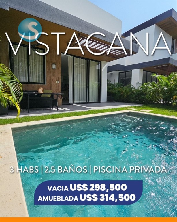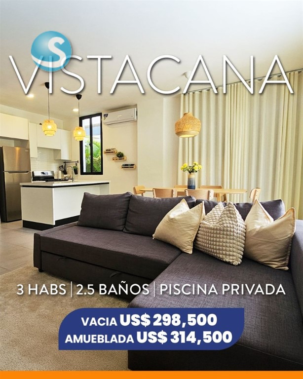Ubicada en Vista Cana, una de las comunidades más exclusivas y completas de Punta Cana, ideal para vivir o invertir en una zona de alta valorización ??? ? DETALLES DE LA VILLA • ??? 3 habitaciones • ?? 2 baños completos • ?? 1 medio baño de visitas • ??? Cocina abierta con diseño moderno • ?? Terraza y patio privado • ?? Piscina privada • ?? 2 parqueos ??? EQUIPAMIENTO • ?? Aires acondicionados en habitaciones y planta baja • ?? Cerradura digital • ?? Línea blanca incluida • ?? Opción de venta completamente amueblada ?? Mascotas permitidas ?? AMENIDADES DE VISTA CANA • ?? Playa artificial • ? Campo de golf • ??? Centro comercial y supermercado • ?? Piscinas • ?? Área infantil • ?? Salón de eventos ?? PRECIO DE VENTA • Villa sin amueblar: US$298,500 • Villa amueblada: US$314,500