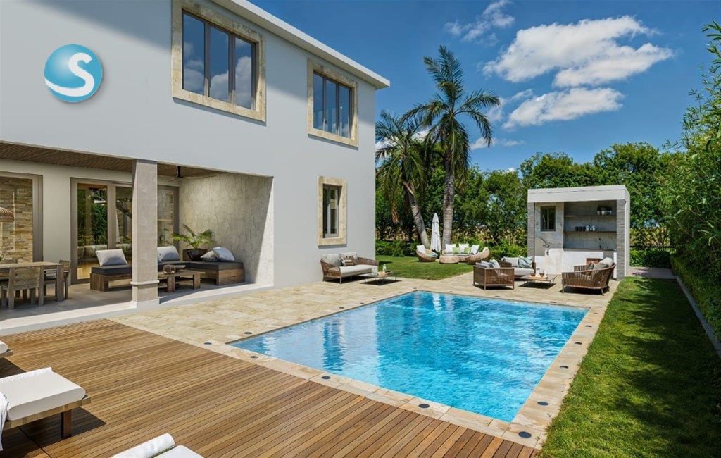 Se vende Villa Exclusiva en Vista Cana •Entrega en Marzo 2026 Solar de 722 mts 438mts construcción Dos niveles Doble altura 4 espaciosos dormitorios (3 dormitorios en segundo nivel, 1 dormitorio primer nivel) Habitación principal con balcón privado con tina. Habitación secundaria con balcón. 4 baños 2 medio baños cocina Area lavado y despensa Comedor Family room Sala Amplia terraza Piscina Área bbq Parqueo techado 2 vehiculos Jardín área verde lateral. Entrada privada al residencial. Detalle de las terminaciones. Piscina porcelanato tipo Bali Pisos y baños en porcelanato . Puertas en madera de Roble Brasileño. Cocina modular MDF Hidrofugo lacado, topes cuarzo. Escalera madera Roble Brasileño. Incluidas amenidades de Vista cana Casa Club Restaurantes Campo Golf Centro deportivo Playas artificiales. Lago Plaza comercial en la entrada de Vistacana. 750,000 us$